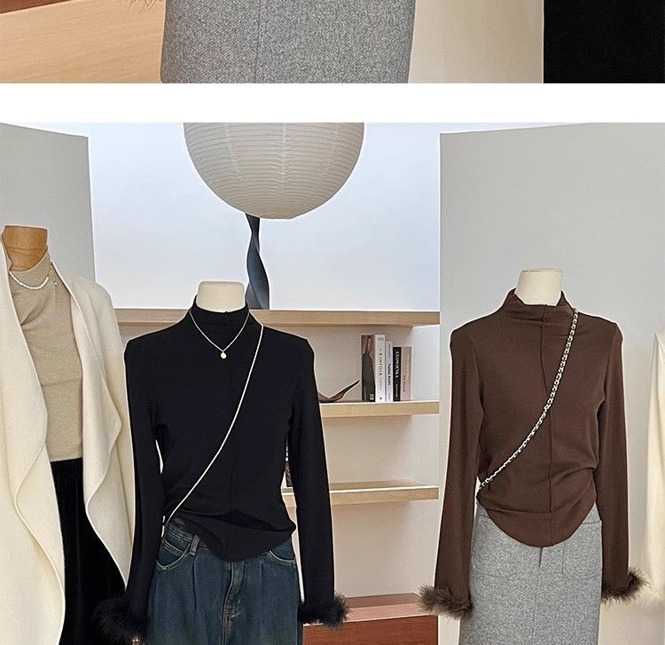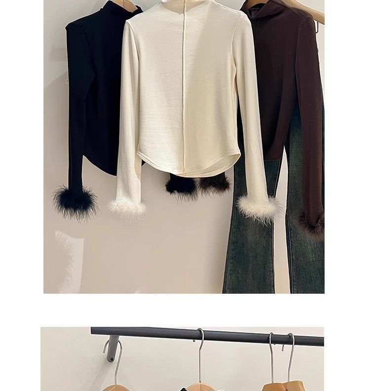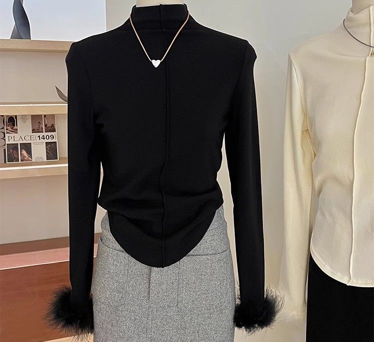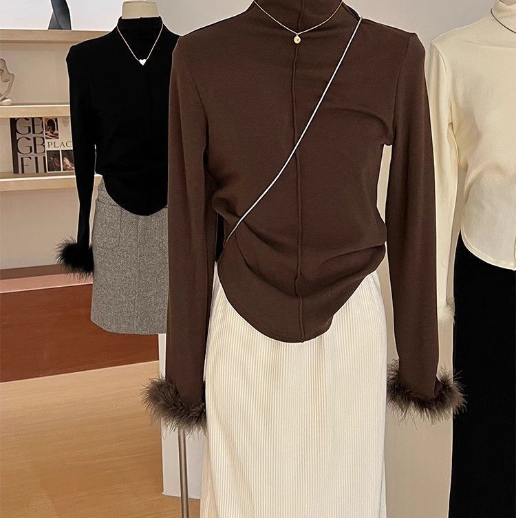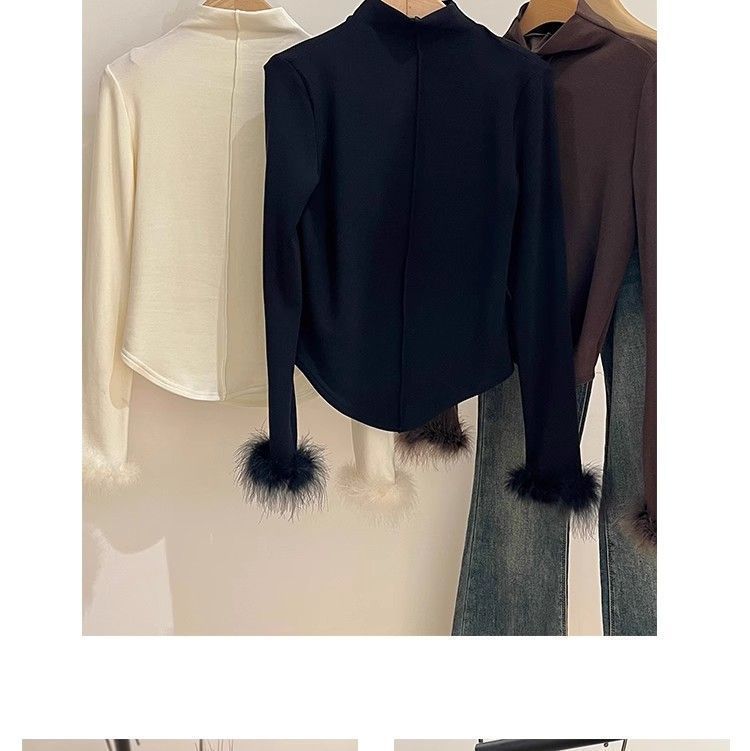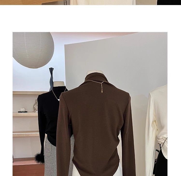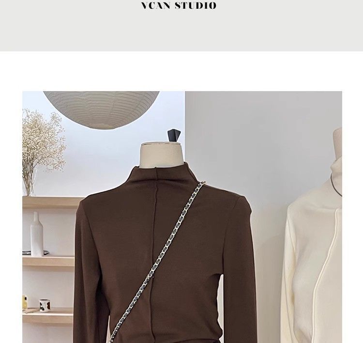 반 높이 칼라 샌딩 베이스 셔츠 여성용 가을 및 겨울 슬림 핏 푹신한 긴팔 분위기 티셔츠 디자인 센스 내부 최고 트렌디스토어 가기