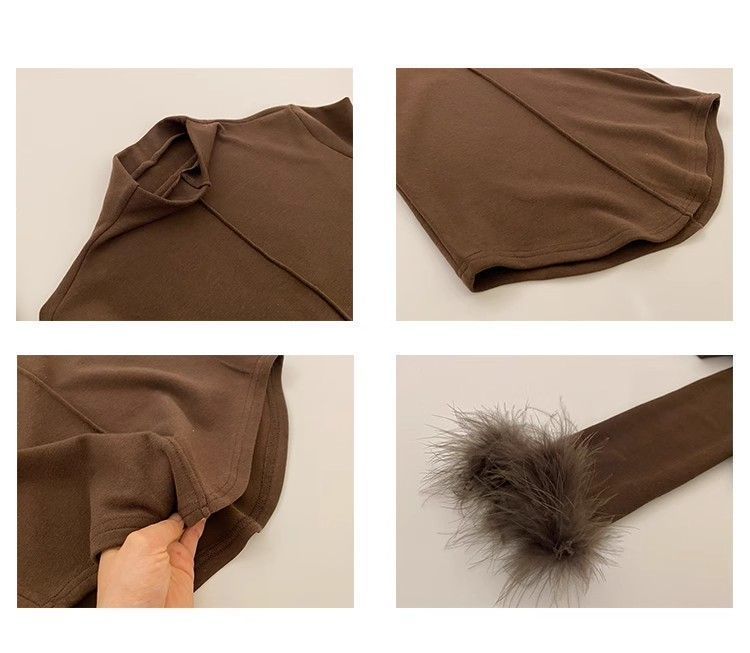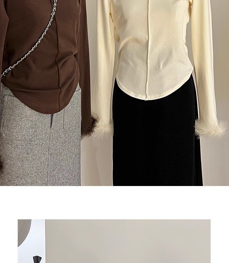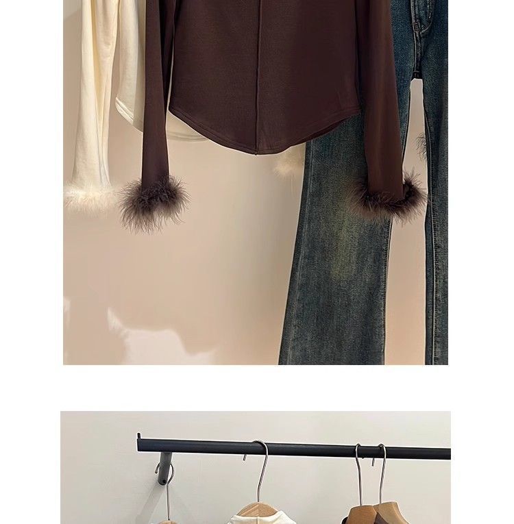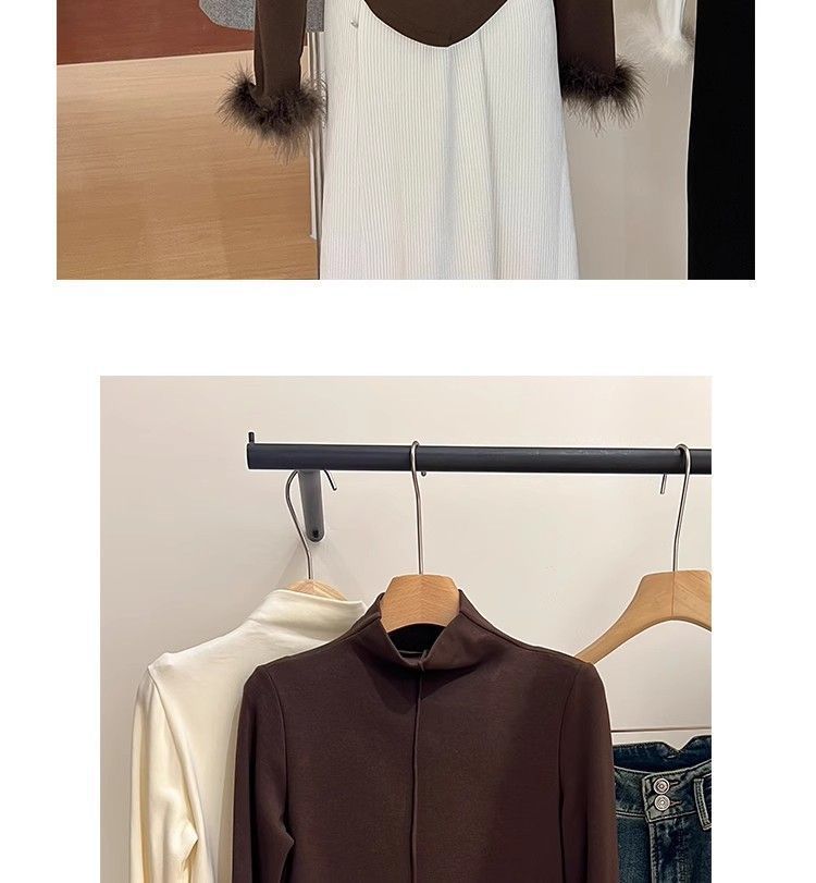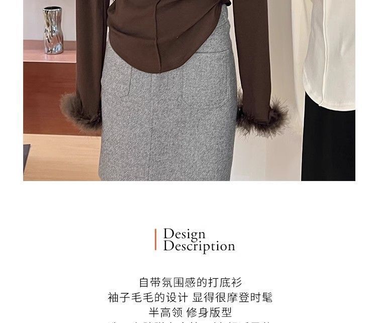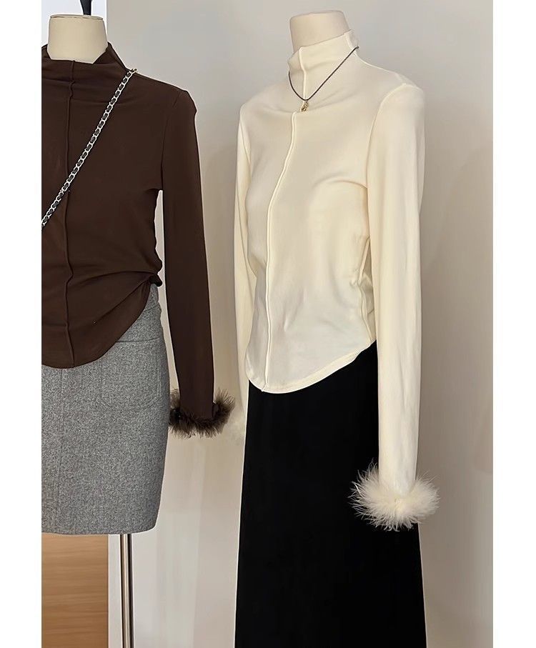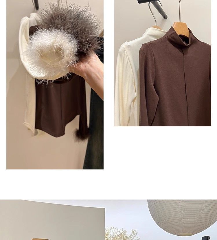 반 높이 칼라 샌딩 베이스 셔츠 여성용 가을 및 겨울 슬림 핏 푹신한 긴팔 분위기 티셔츠 디자인 센스 내부 최고 트렌디스토어 가기