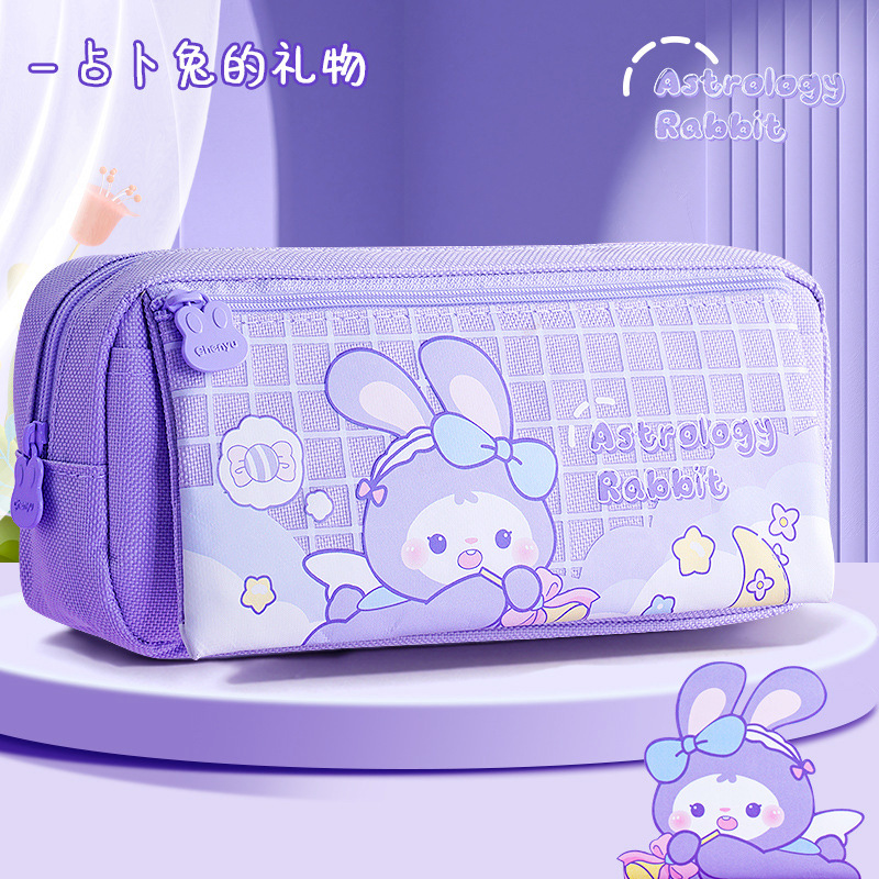 창조적 인 감압 버클 패브릭 연필 가방 다층 대용량 귀여운 우유 호 고 가치 연필 가방 학생 보관