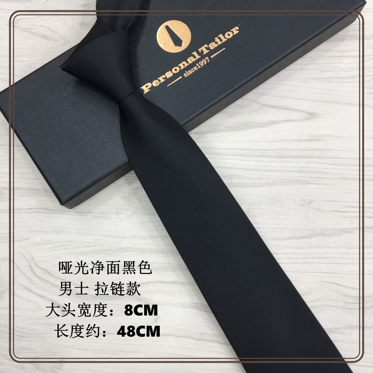 • 남성용 매트 순수 블랙 지퍼 8CM