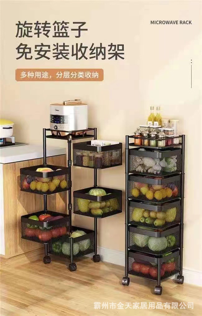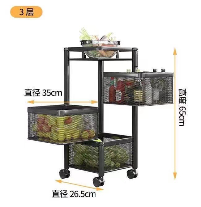 주방 회전 랙 가정용 거실 스낵 과일 및 야채 바닥 스탠딩 다층 트롤리 랙 도매스토어 가기