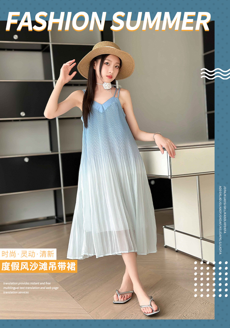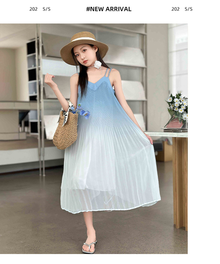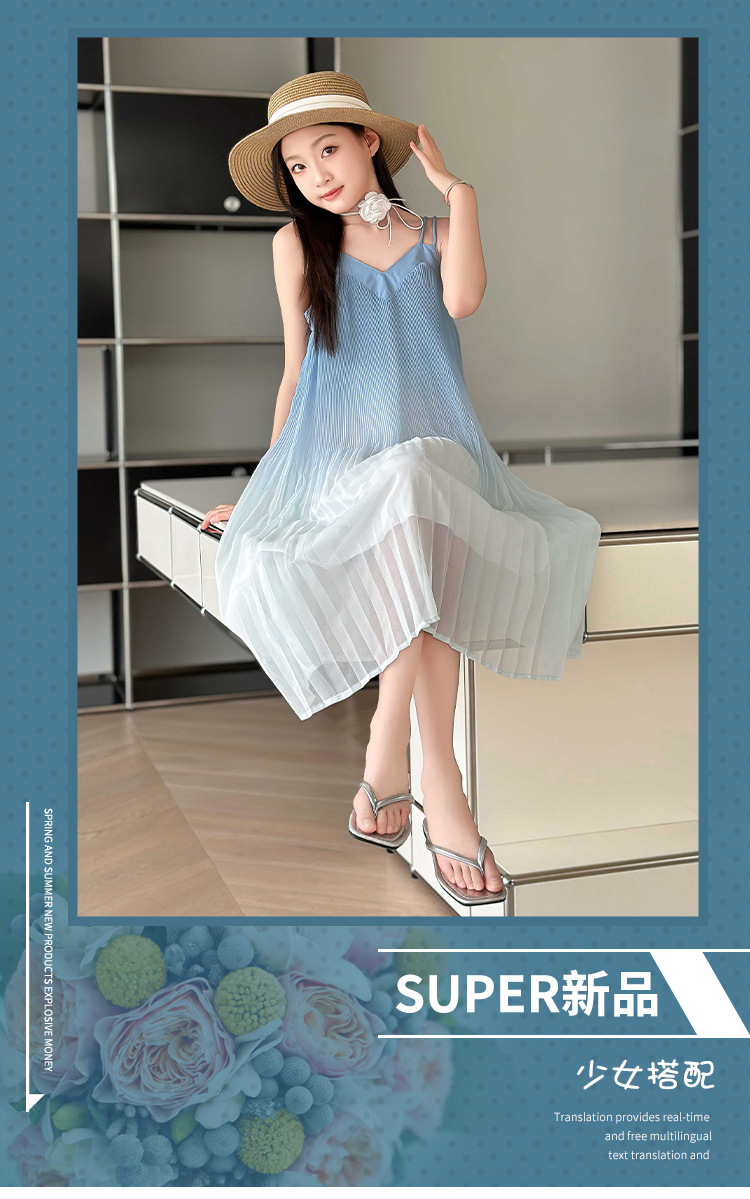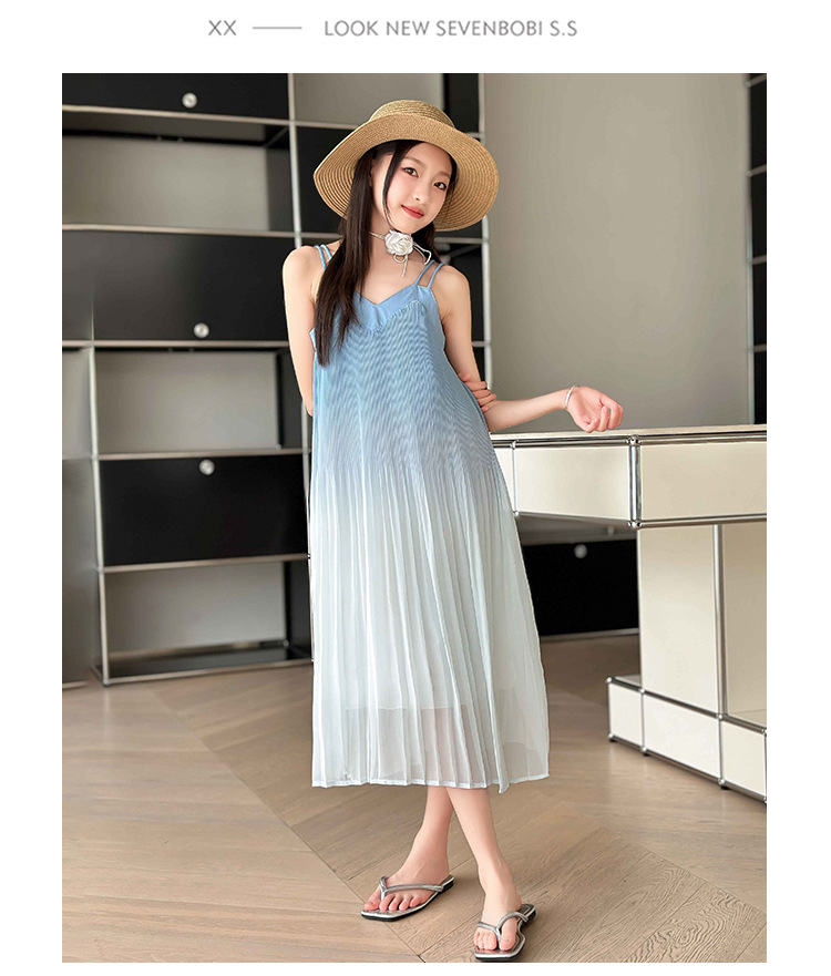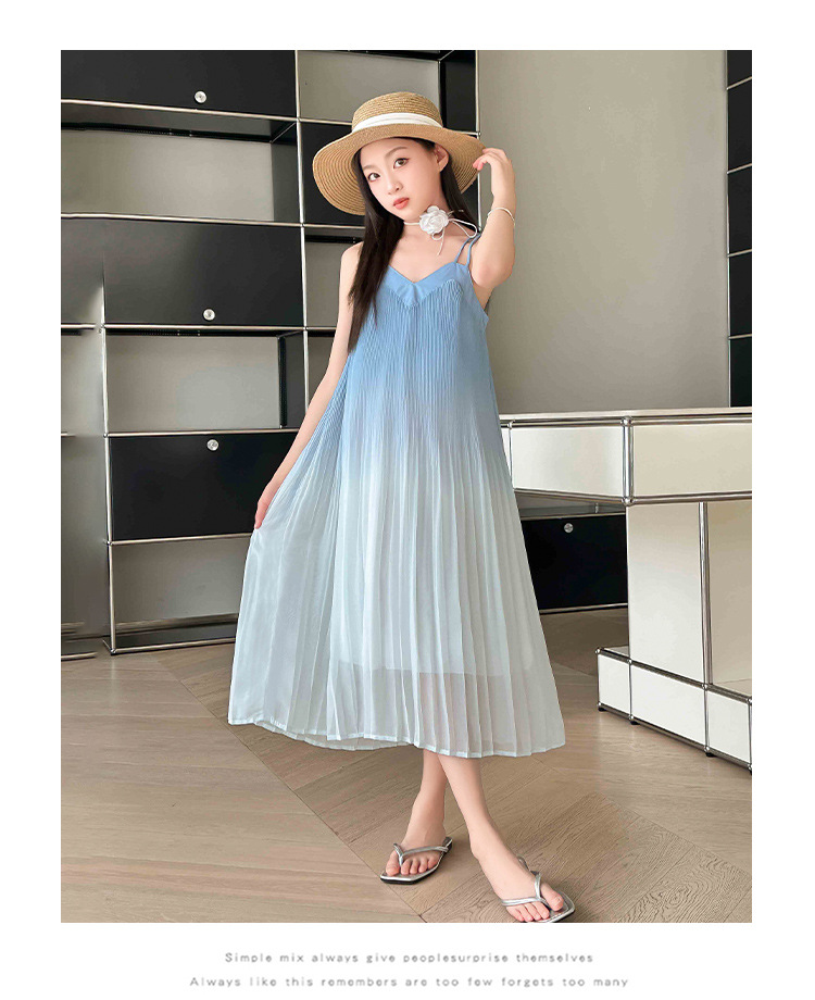 소녀 원피스 2024 년 여름 새로운 어린이 롱 비치 원피스 해변 휴가 그라데이션 스트랩 원피스스토어 가기
