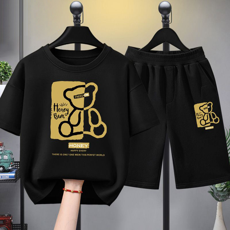 반팔 어린이 여름 티셔츠 세트 2024 새 소년 반팔 캐주얼 투피스 잘 생긴 스포츠웨어 아동복스토어 가기