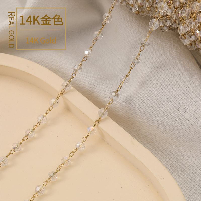 18K 금 감싼 구리 비드 컷 라운드 지르콘 체인 diy 느슨한 체인 소재 수제 팔찌 보석 액세서리스토어 가기