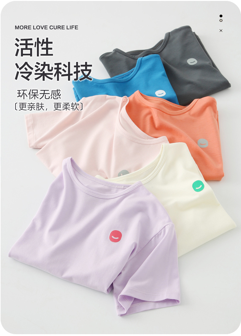 25 여름 어린이 티셔츠 한국 스타일 외주 소년 티셔츠 클래스 여름 Lyocell 통기성 쿨 걸스 짧은 소매 탑