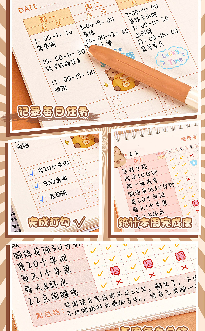 이 계획 노트북 시간 관리 계획을 세우기 위해 어린이들은이 휴일에 좋은 습관을 펀치하기 위해 자기 훈련을 배웁니다.스토어 가기