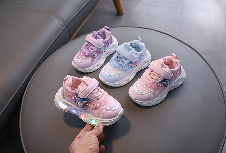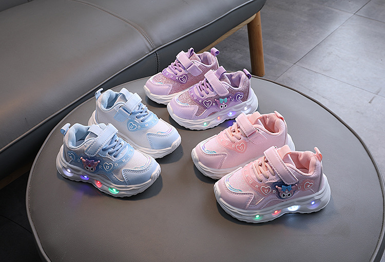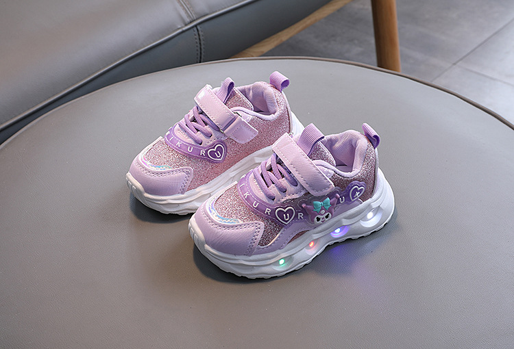 소녀 빛나는 운동화 2024 가을 어린이 부드러운 바닥 미끄럼 방지 LED 빛나는 신발 아기 캐주얼 올 매치 신발스토어 가기