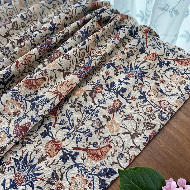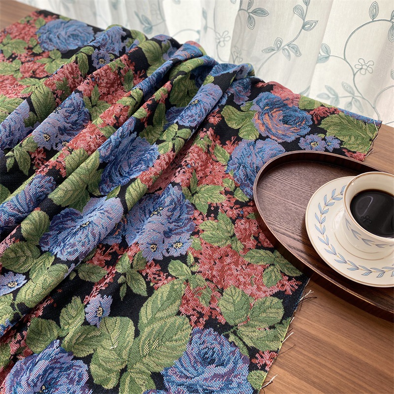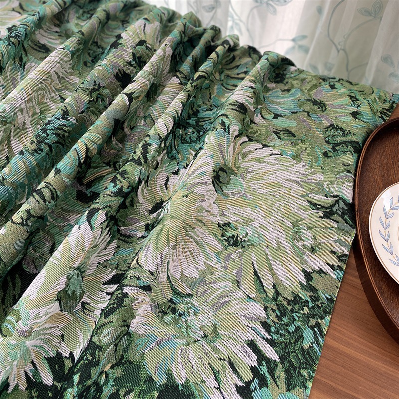 특별 제공 새로운 중국 푸른 장식 자카드 직물 DIY 식탁보 테이블 깃발 베개 배치 짧은 커튼 유화 스타일 원단