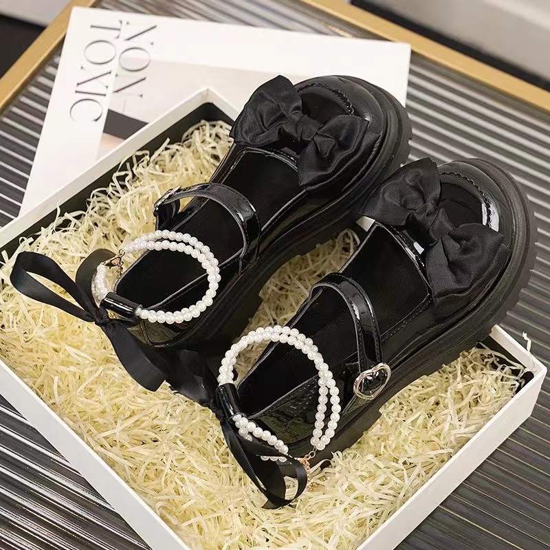 프랑스 스타일 메리 제인 작은 가죽 신발 여성의 2024 새로운 여름 활 라운드 발가락 두꺼운 일본 스타일 JK 싱글 레이어 신발스토어 가기