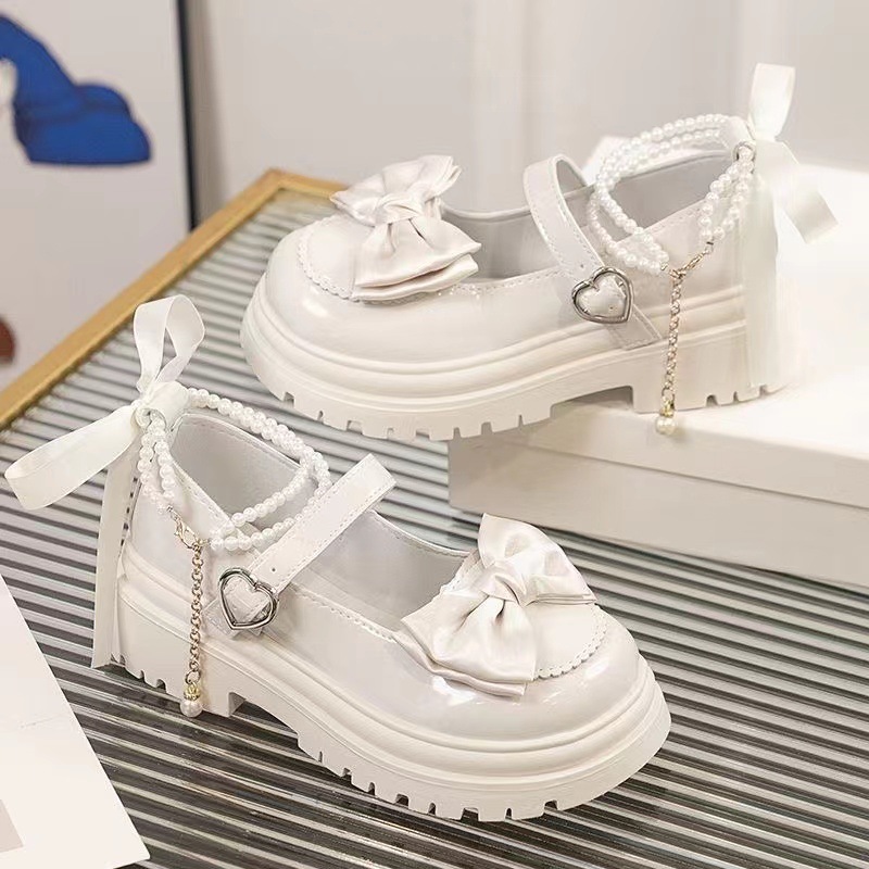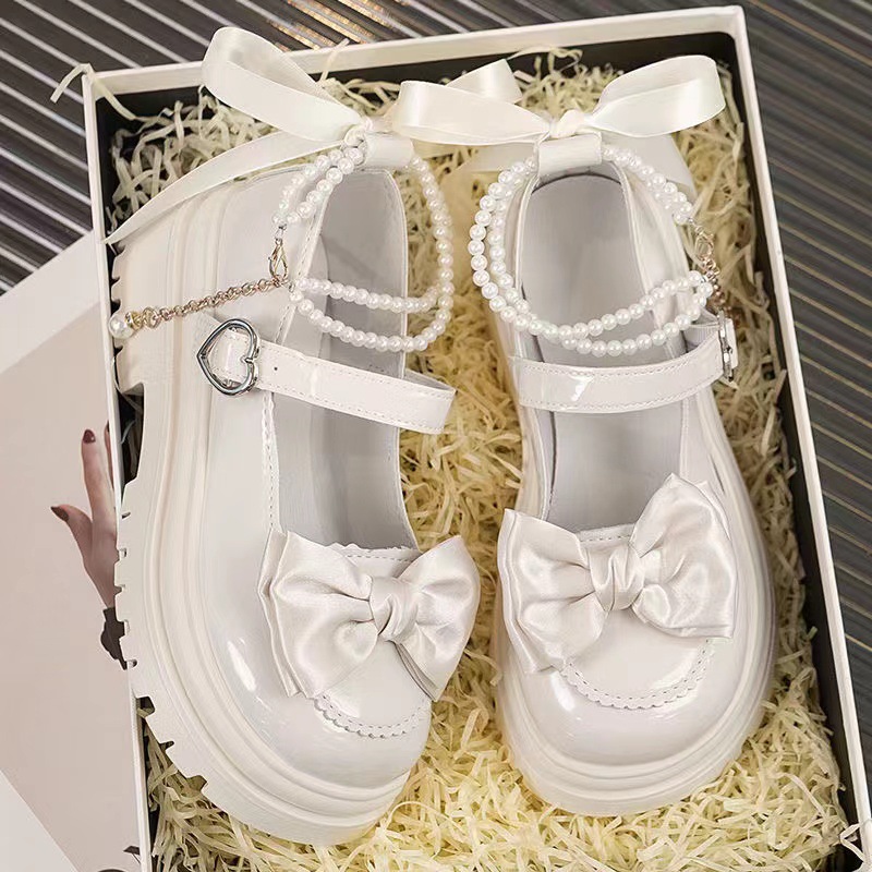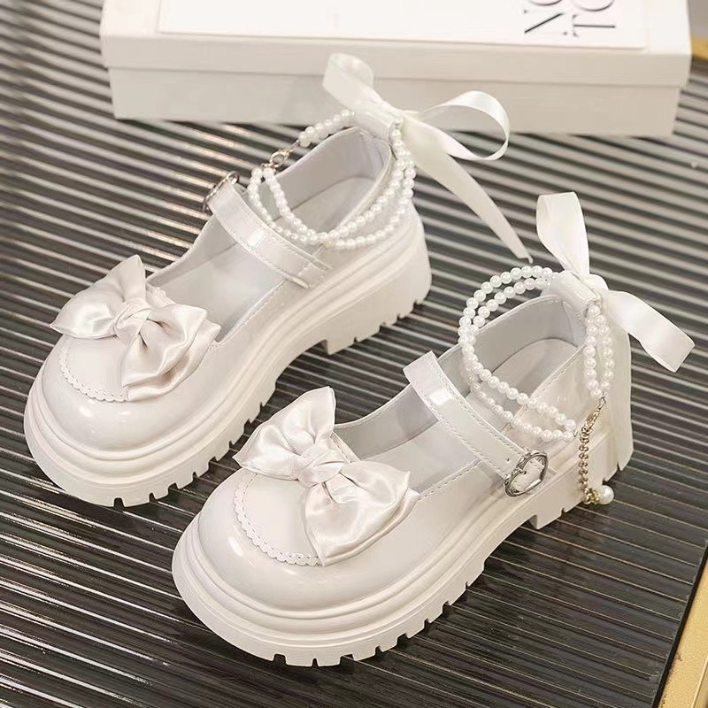 프랑스 스타일 메리 제인 작은 가죽 신발 여성의 2024 새로운 여름 활 라운드 발가락 두꺼운 일본 스타일 JK 싱글 레이어 신발