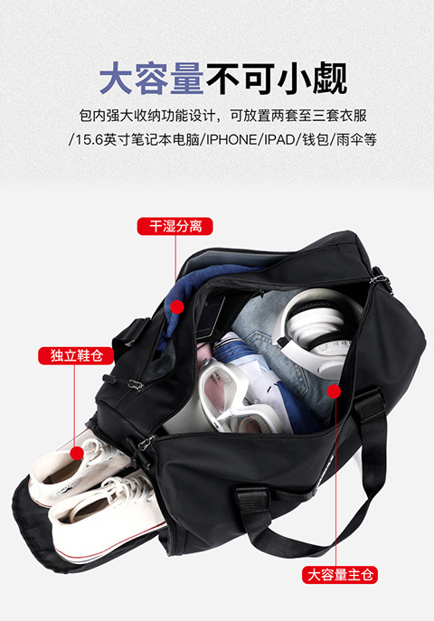 수하물 가방 대용량 스포츠 어깨 여행 가방 한국 스타일 건조하고 젖은 분리 남녀 체육관 가방 독립 신발 빈