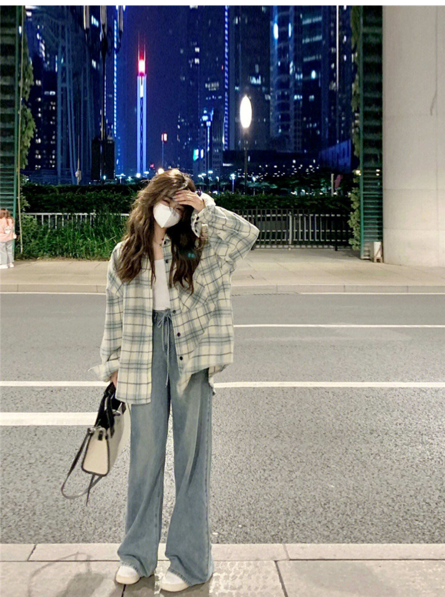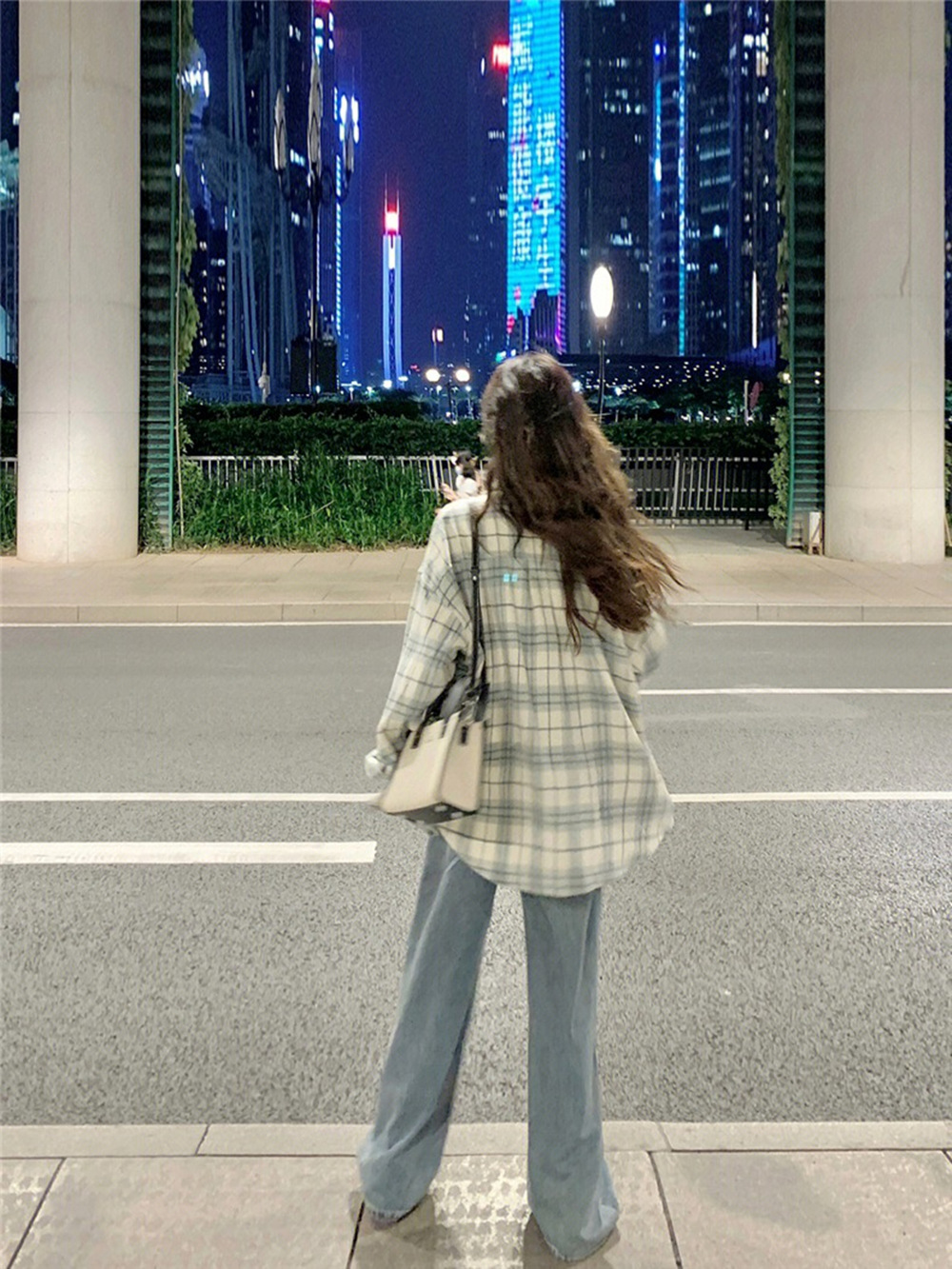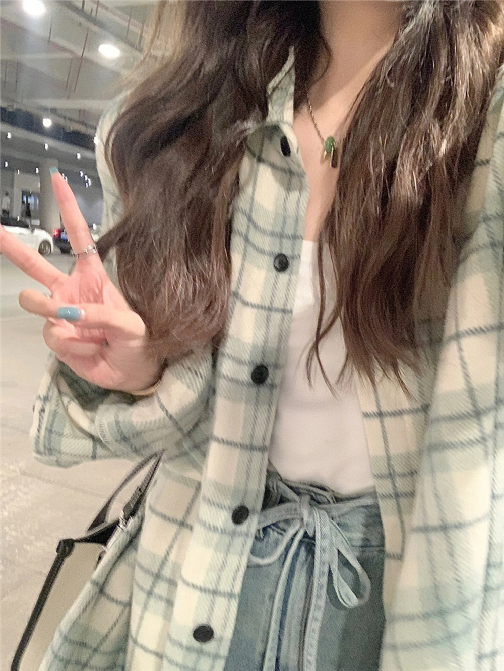 빈티지 홍콩 스타일 체크 무늬 셔츠 코트 여성 여름 디자인 감각 느슨한 태양 보호 셔츠 한국 스타일 긴 소매 탑 봄과 가을스토어 가기