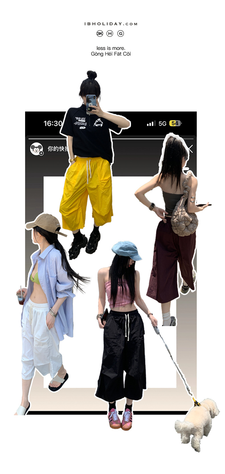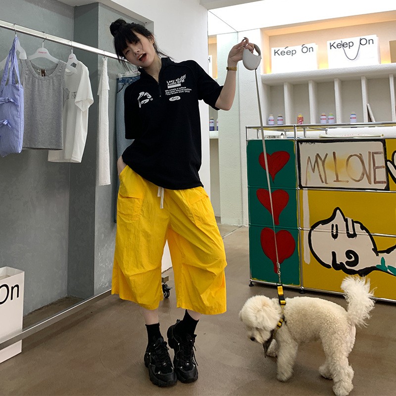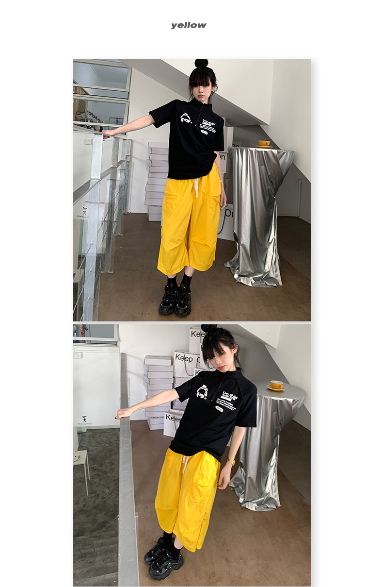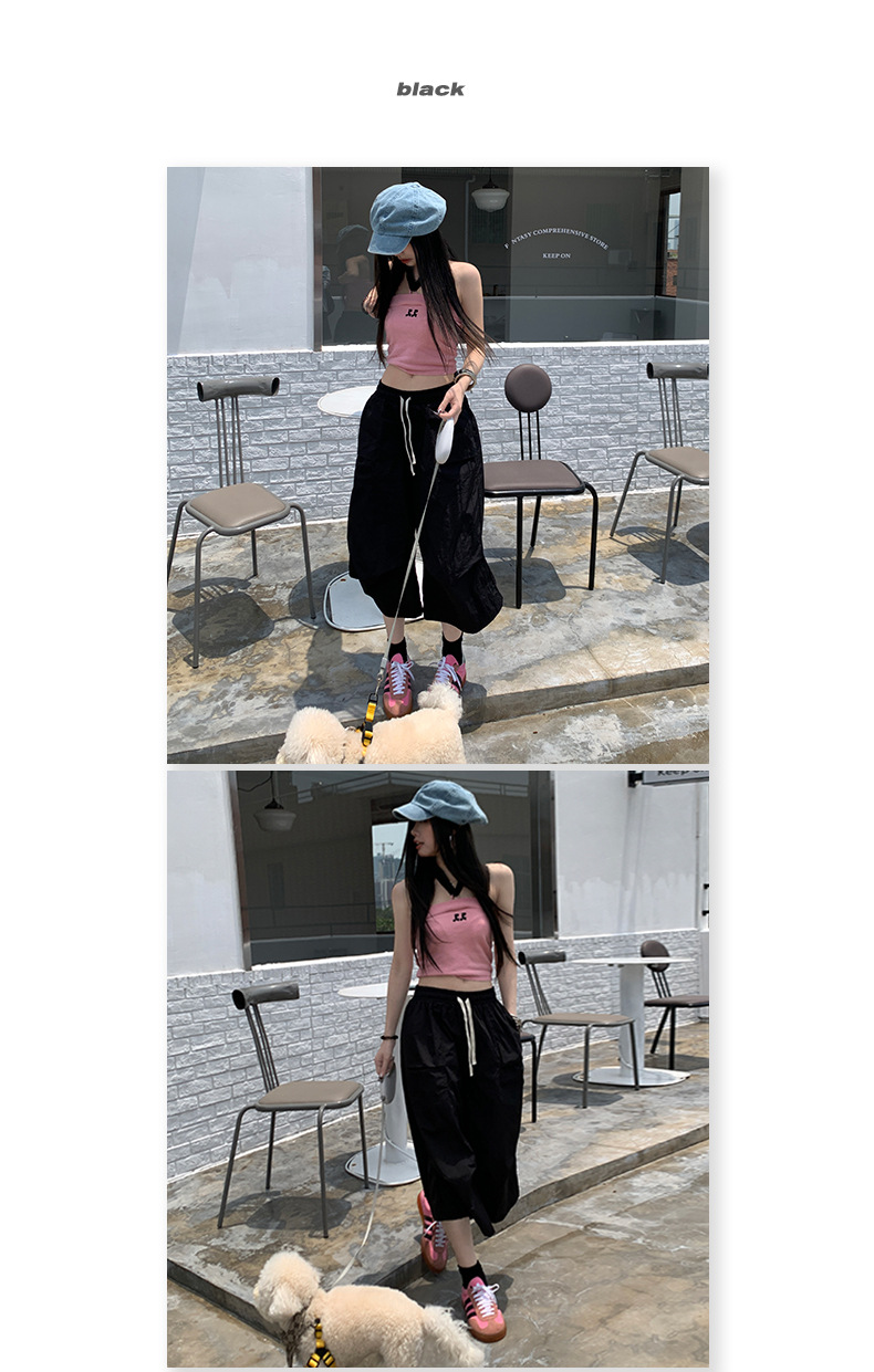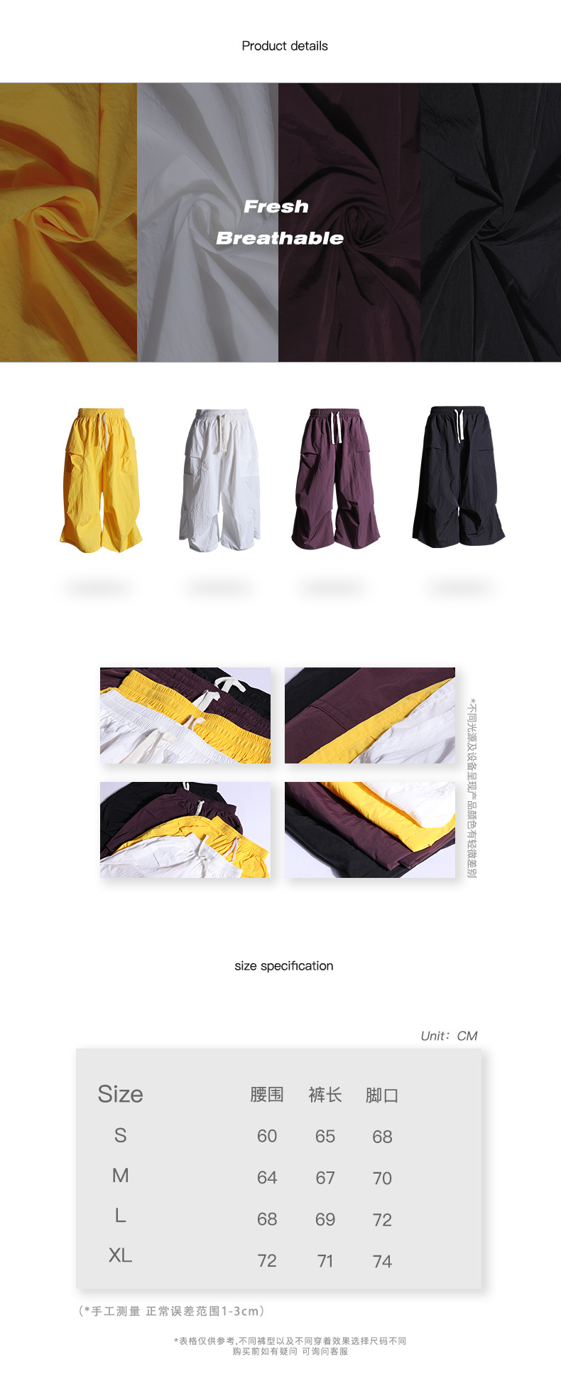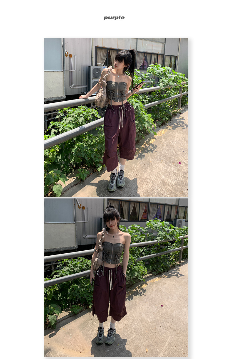 아메리칸 스타일 스트레이트 오버홀 여성 2024 여름 주름 낙하산 바지 느슨한 슬리밍 캐주얼 와이드 레그 자른 바지스토어 가기