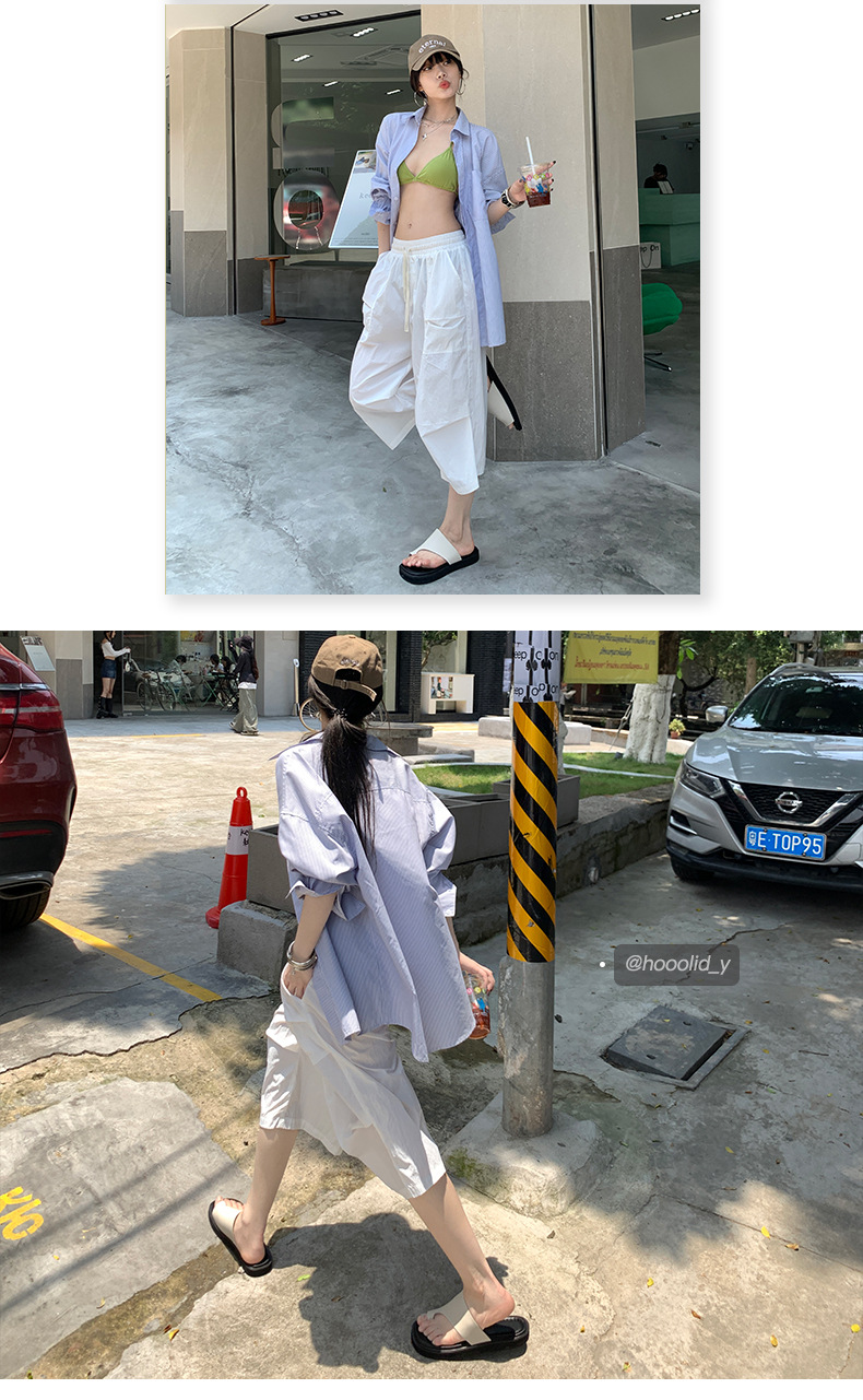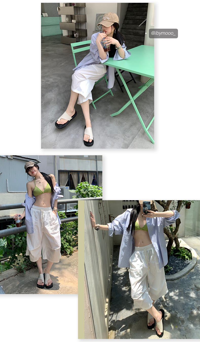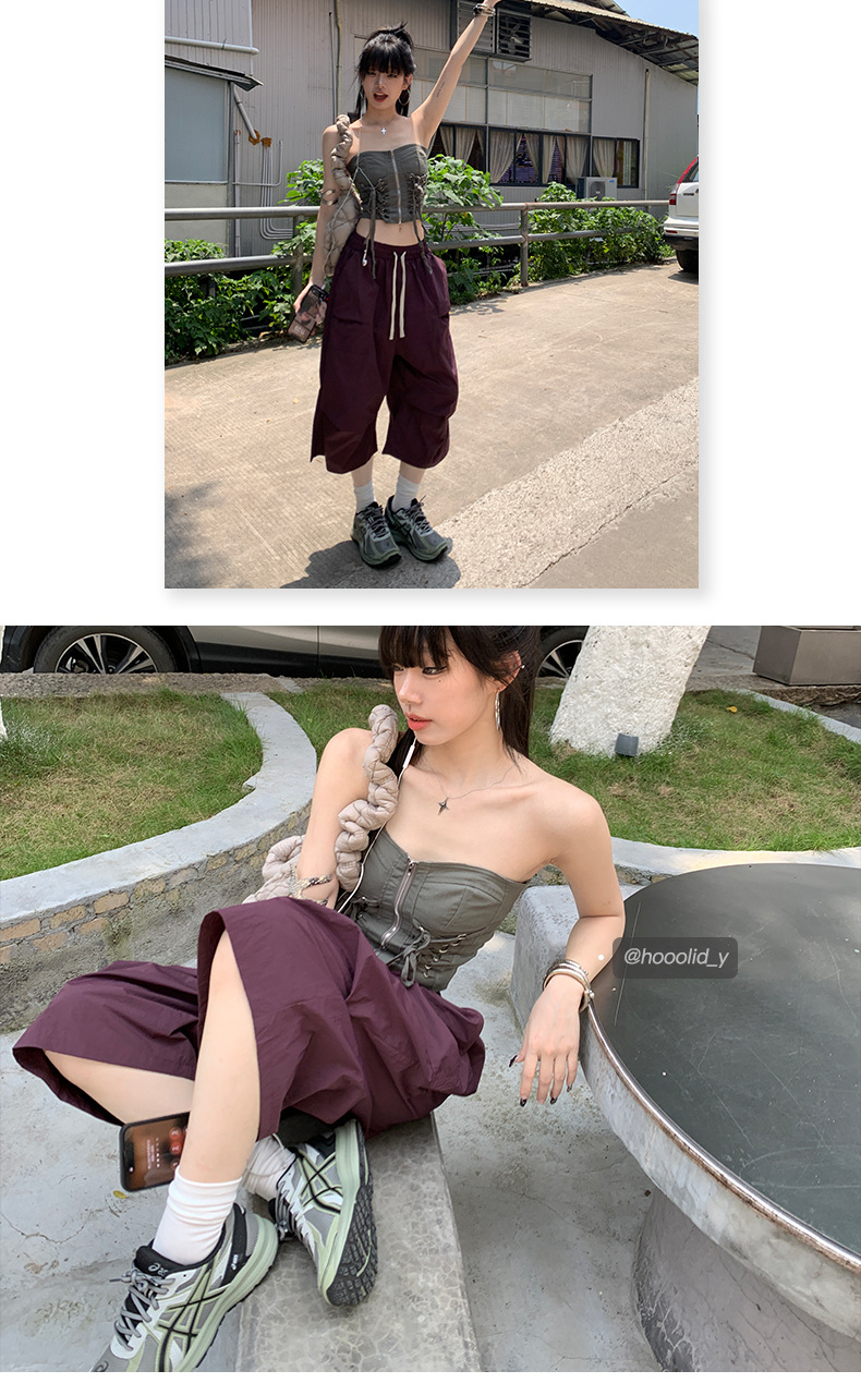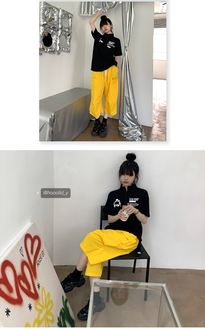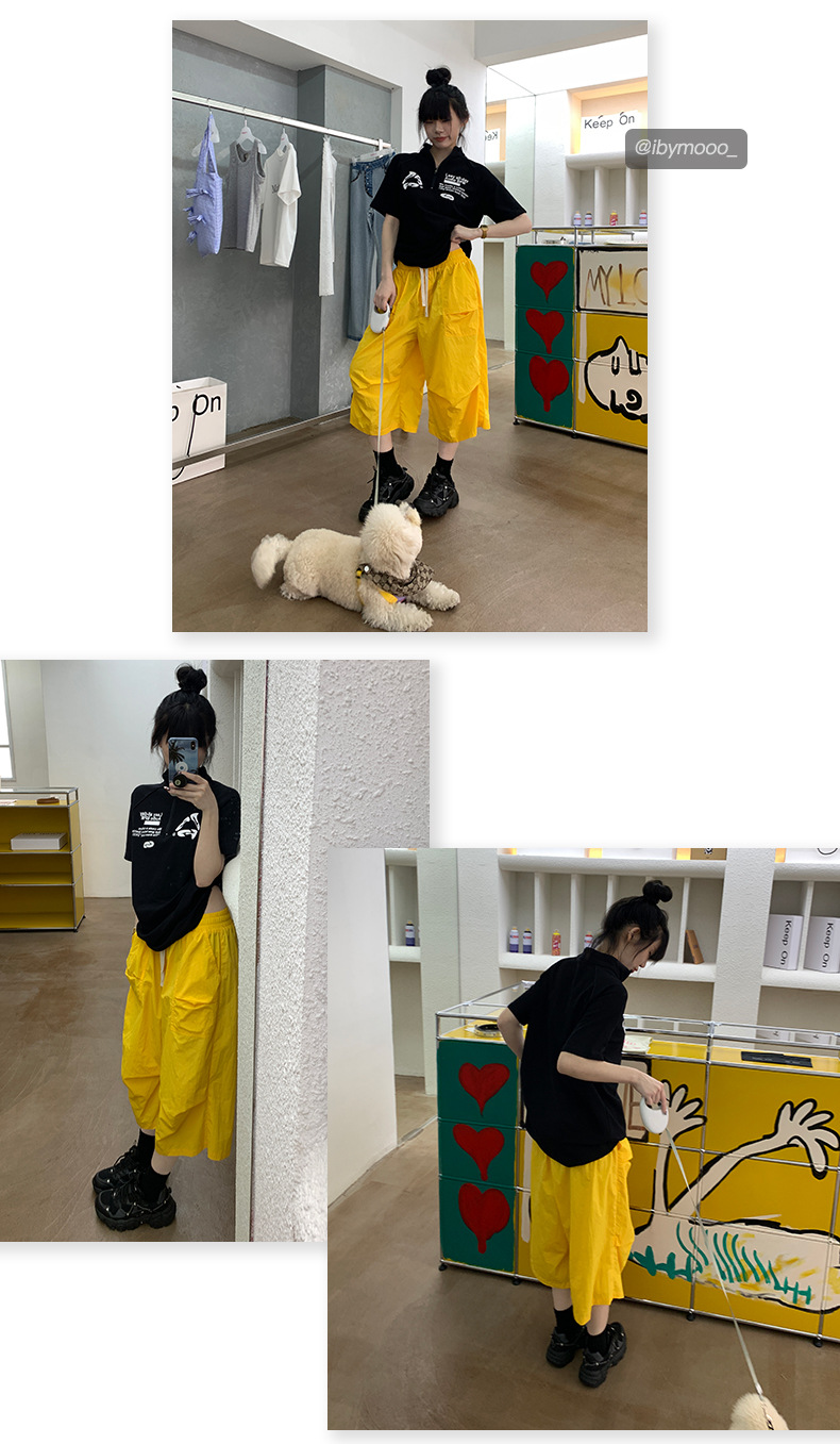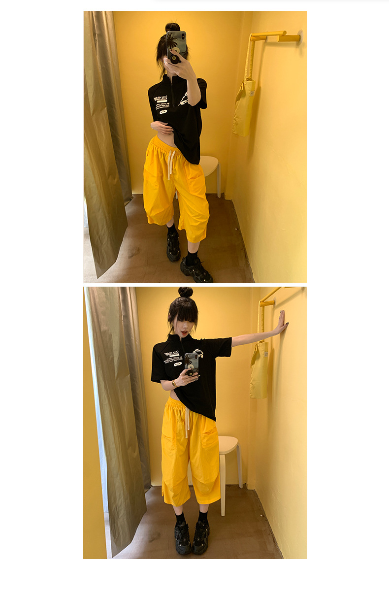 아메리칸 스타일 스트레이트 오버홀 여성 2024 여름 주름 낙하산 바지 느슨한 슬리밍 캐주얼 와이드 레그 자른 바지스토어 가기
