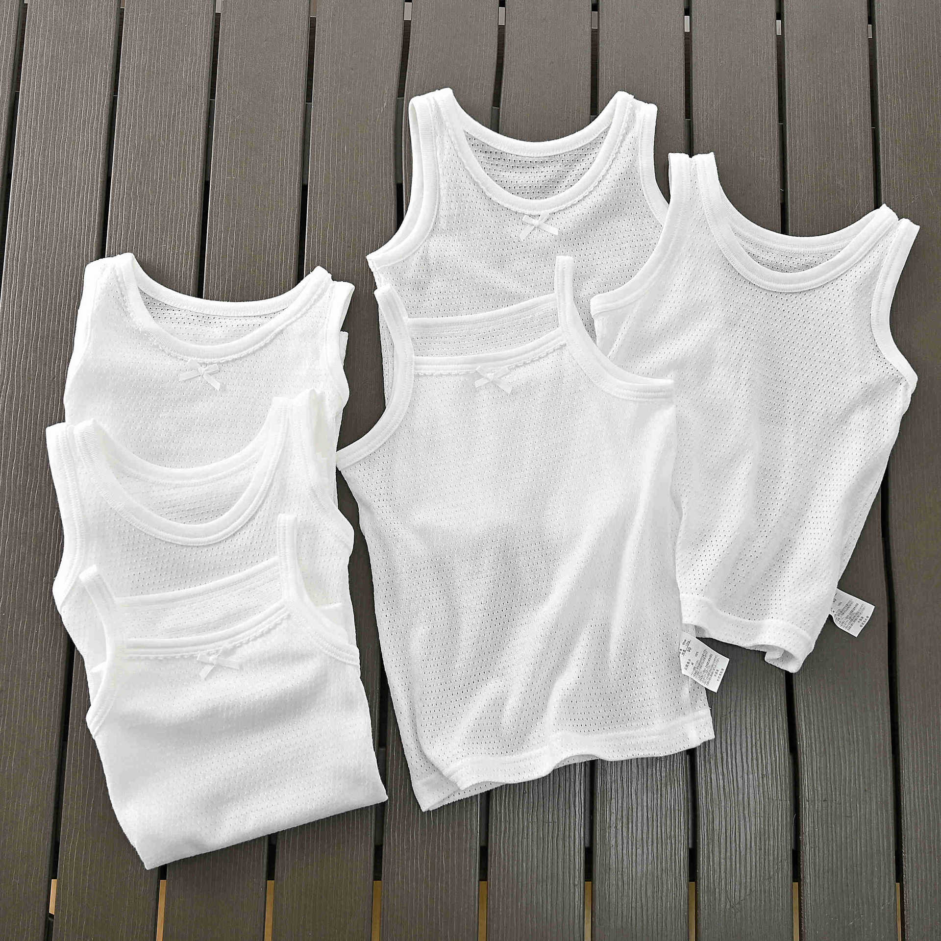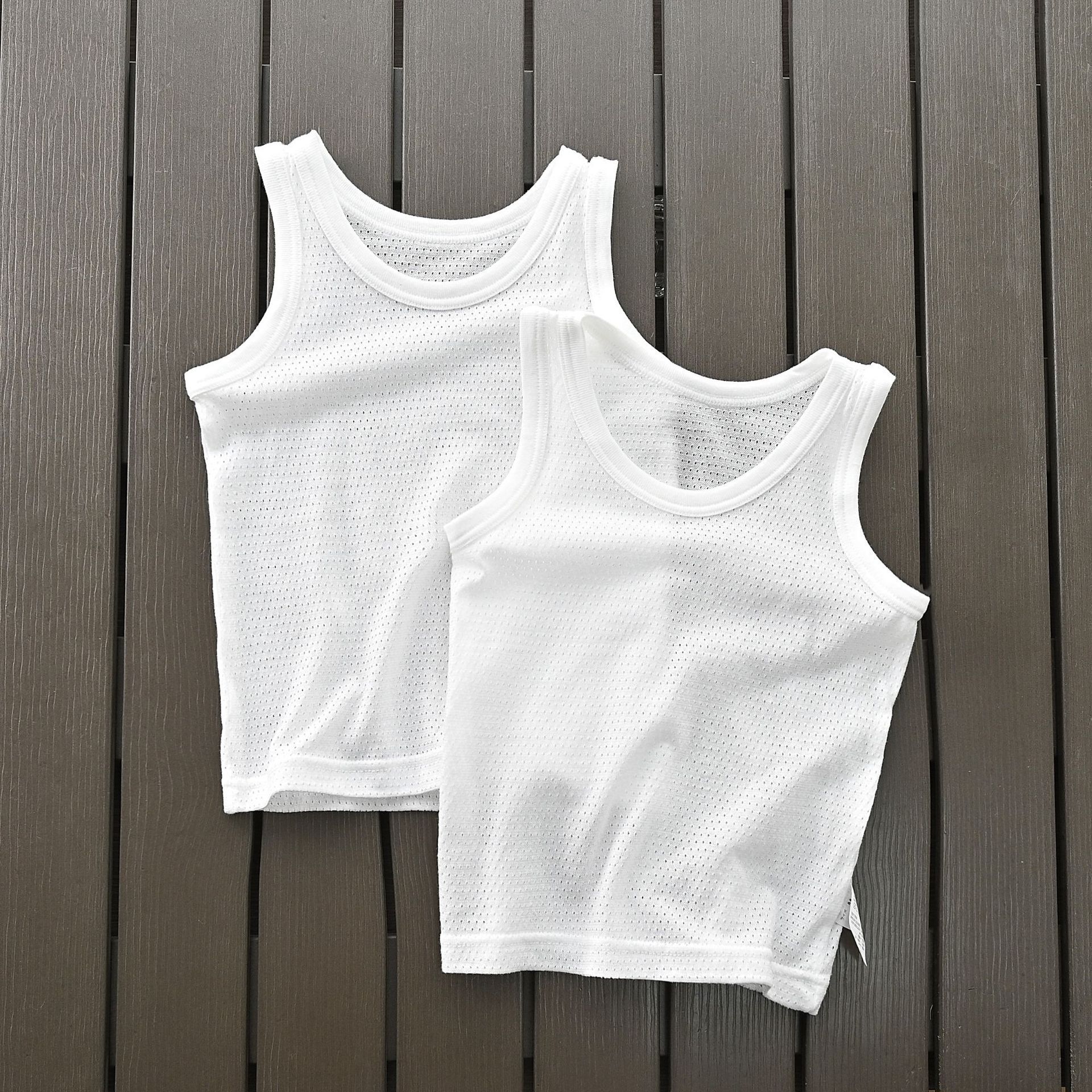 하위 수출 아동복 소스 공장 새로운 메쉬 얇은 흰색 땀 흡수성 소년 소녀 여름 바지 조끼 민소매스토어 가기