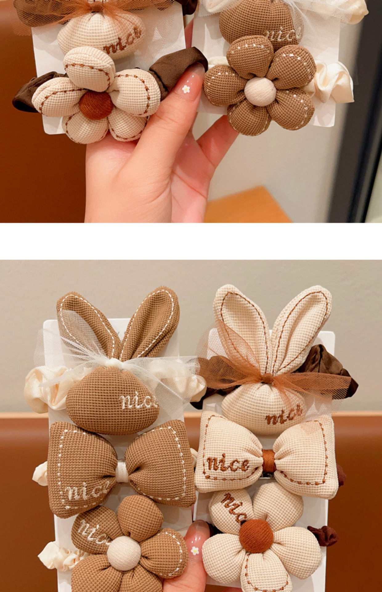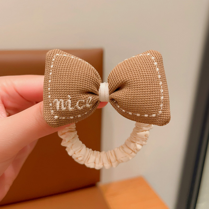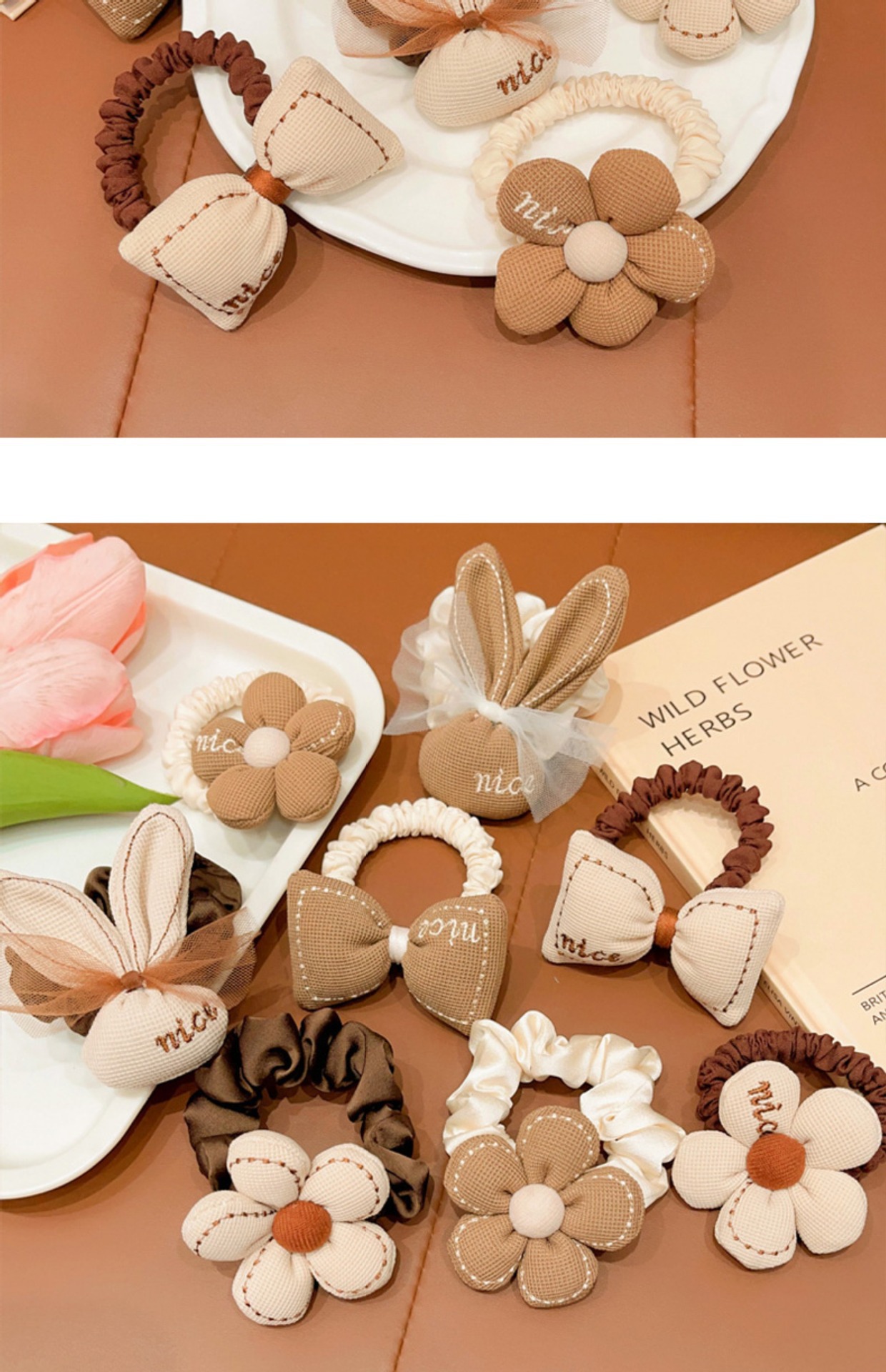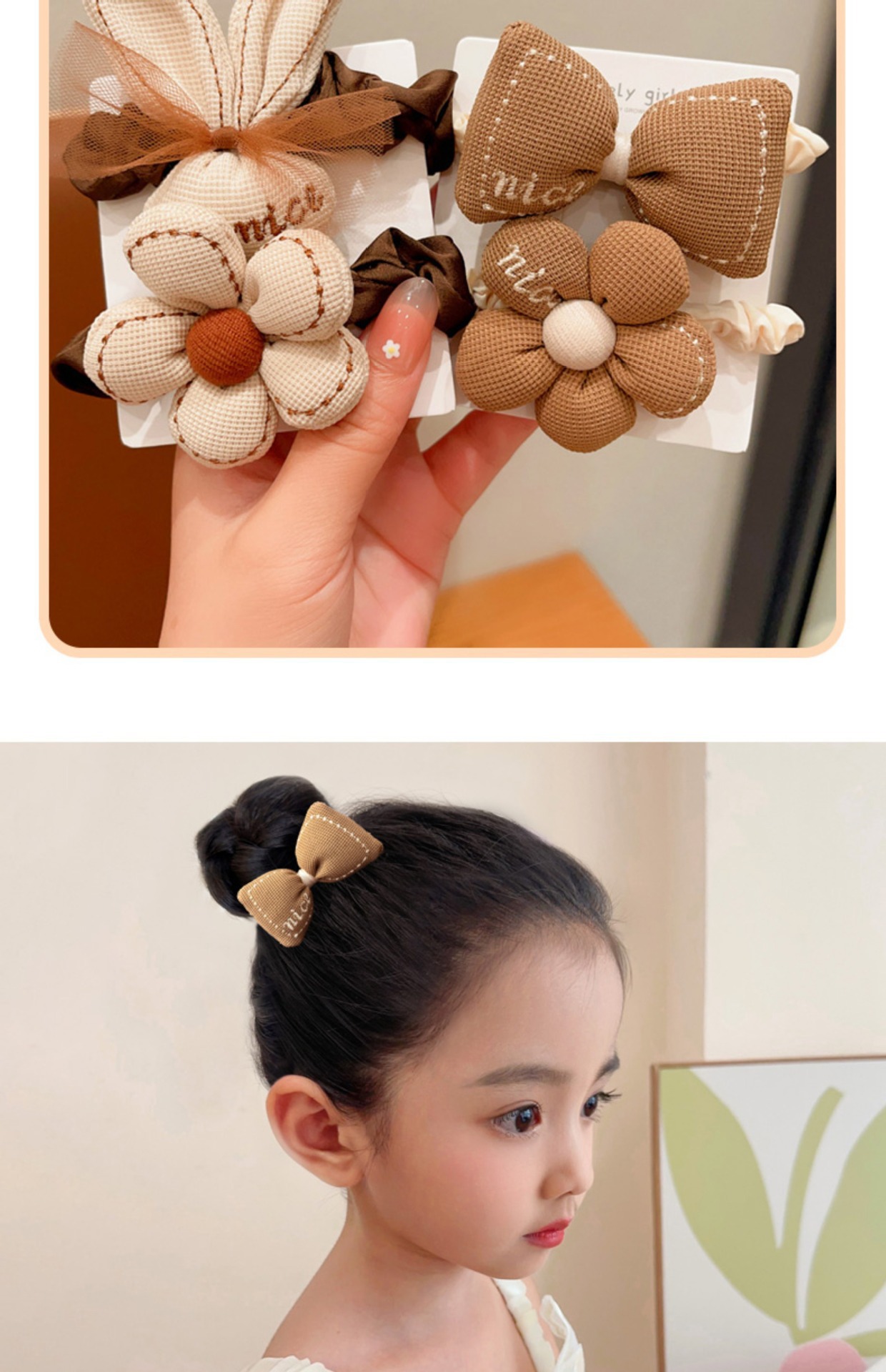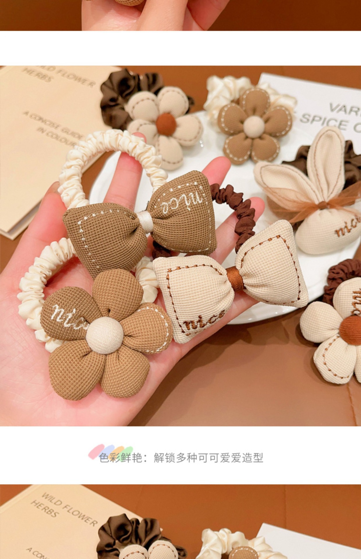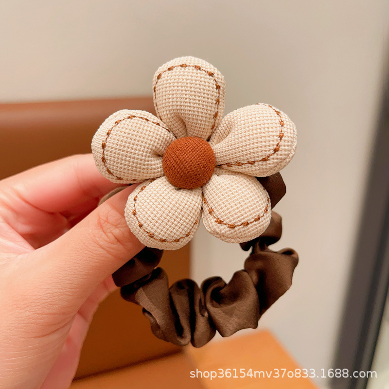 2023 새로운 어린 소녀 높은 감각 머리 반지 아기 넥타이 머리는 머리 고무 밴드 어린이 라이트 베이지 꽃 머리 밧줄을 다치게하지 않습니다