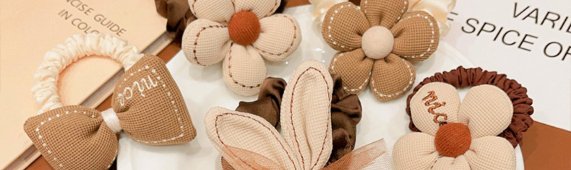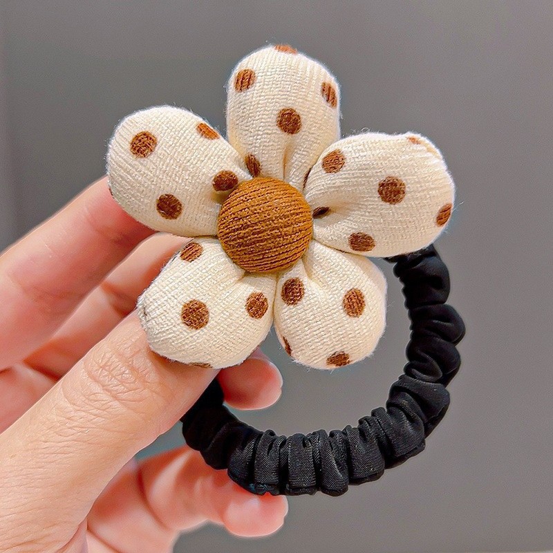 • S2-16호#카멜 브라운 물방울 플라워 헤어끈