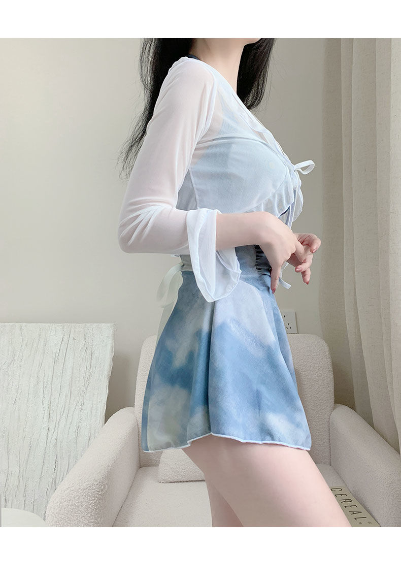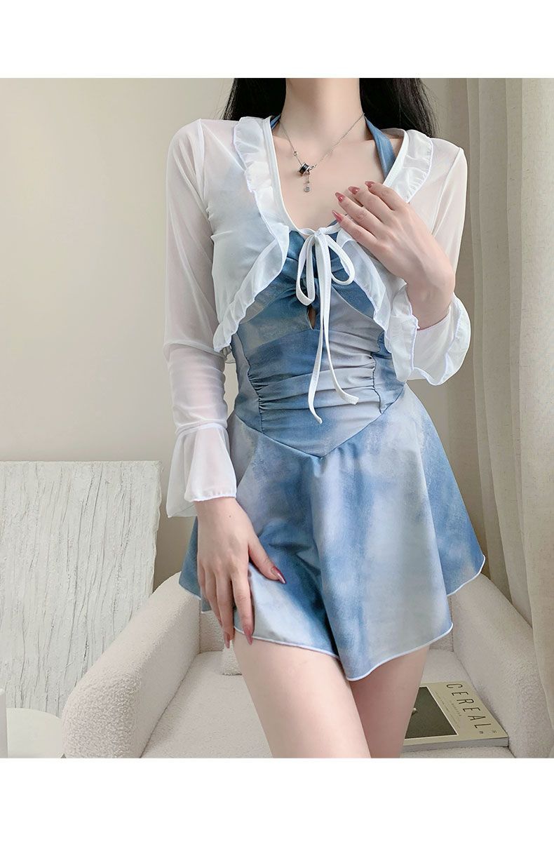 2025년 신형 여성용 원피스 수영복, 홀터넥 스커트 스타일, 배 커버, 슬리밍, 휴가용 보수적인 아우터, 긴팔 온천 수영복