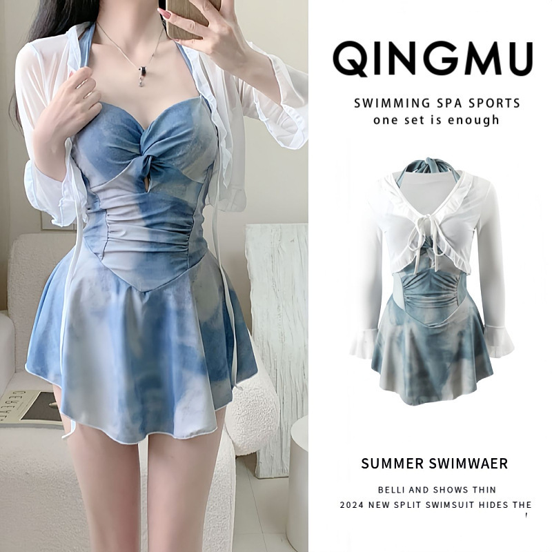 2025년 신형 여성용 원피스 수영복, 홀터넥 스커트 스타일, 배 커버, 슬리밍, 휴가용 보수적인 아우터, 긴팔 온천 수영복스토어 가기