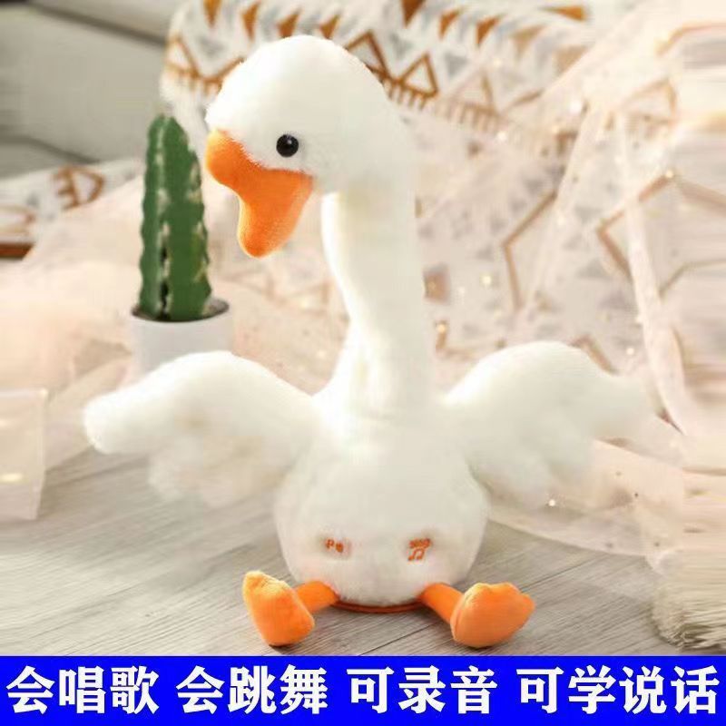 시뮬레이션 큰 흰색 거위 빛나는 노래 목 꼬인 녹음 혀 말하기 귀여운 전기 봉제 장난감 어린이 선물스토어 가기