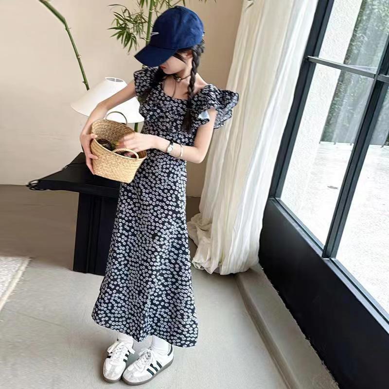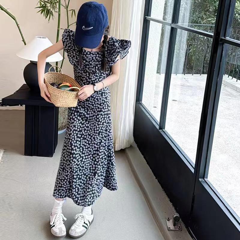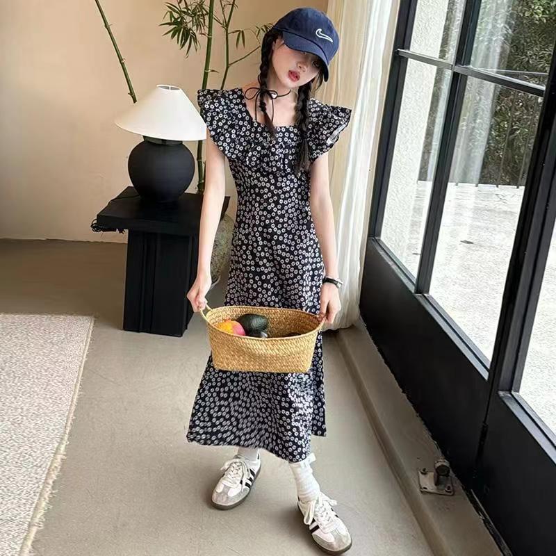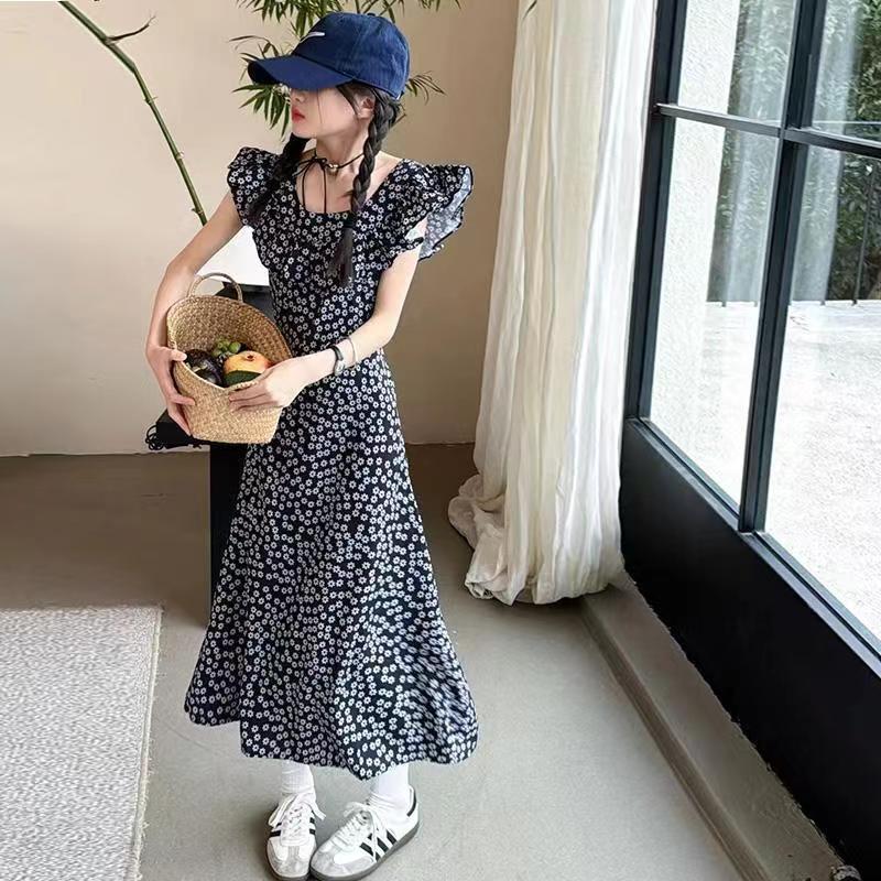 여자 여름 드레스 2025 새로운 중대형 어린이 슈퍼 서양식 여름 드레스 공주 드레스 어린 소녀 꽃 무늬 드레스