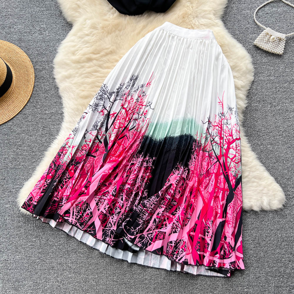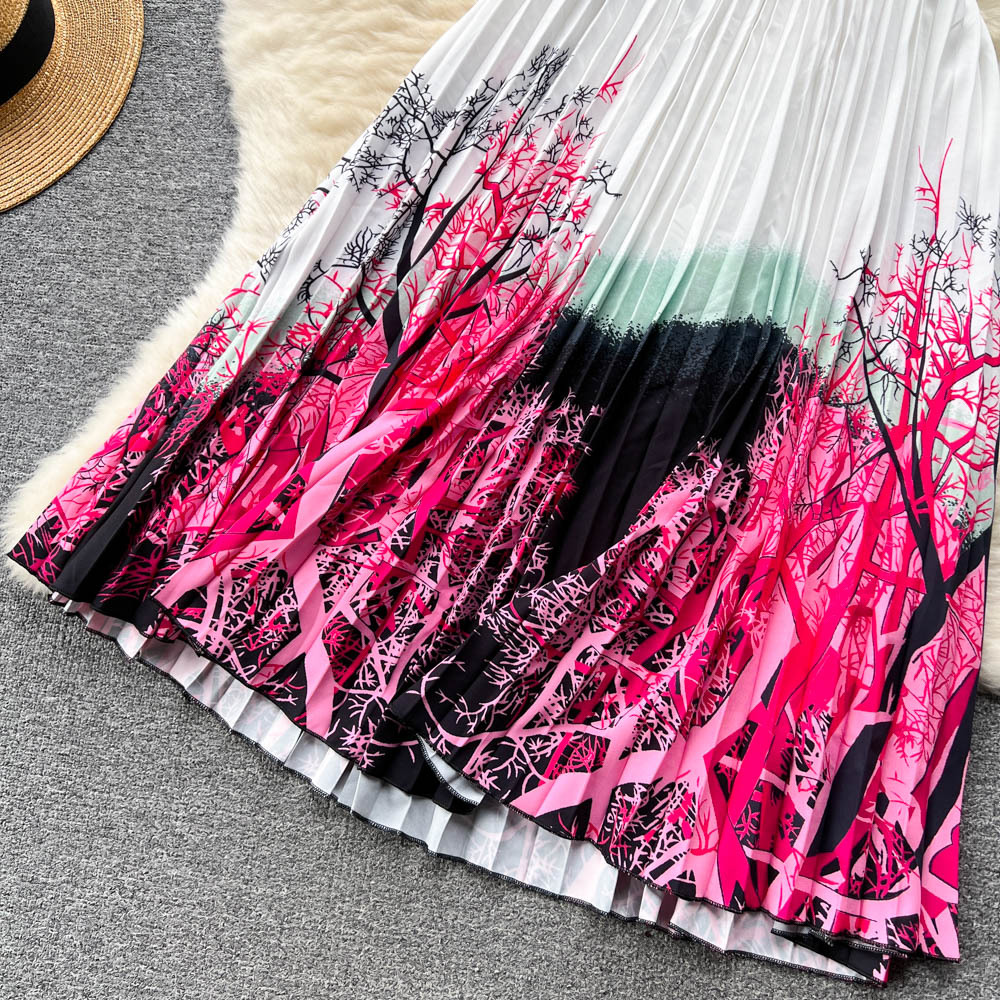 빈티지 우아한 스타일 세트 여성 여름 하이 엔드 디자인 틈새 민소매 셔츠 탑 주름 긴 원피스 투피스 세트스토어 가기