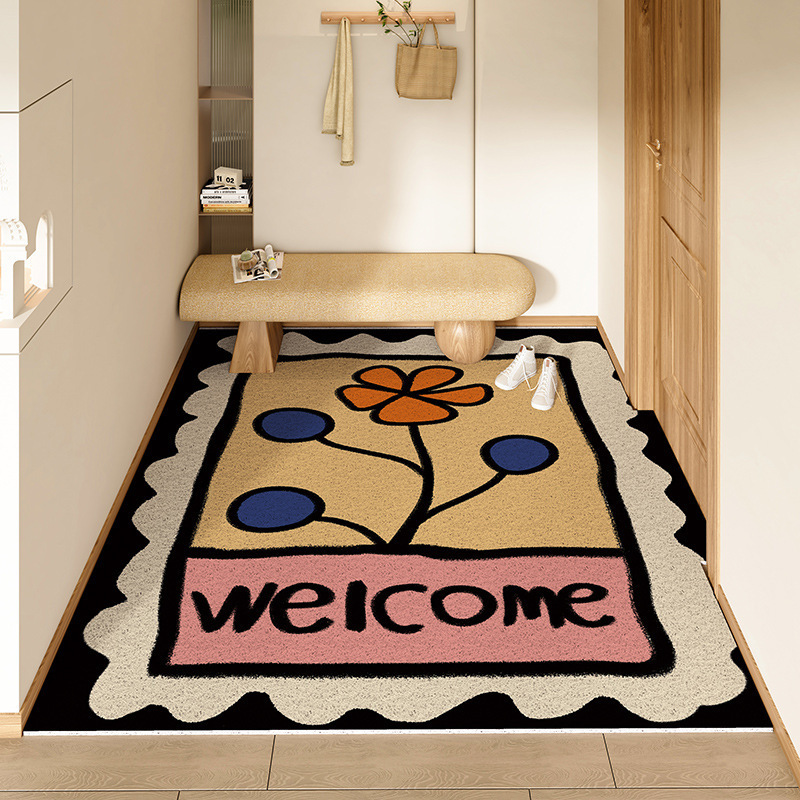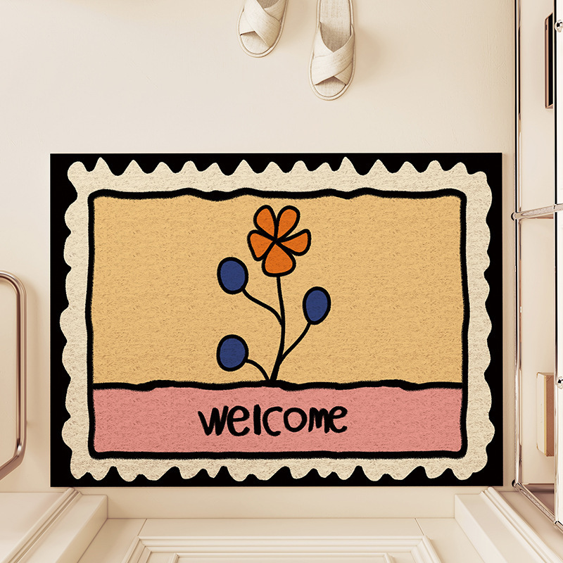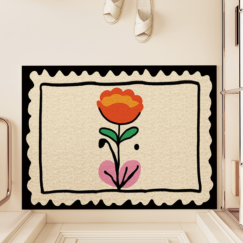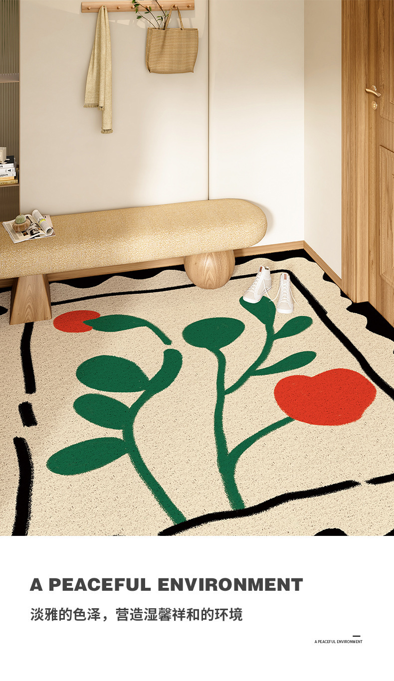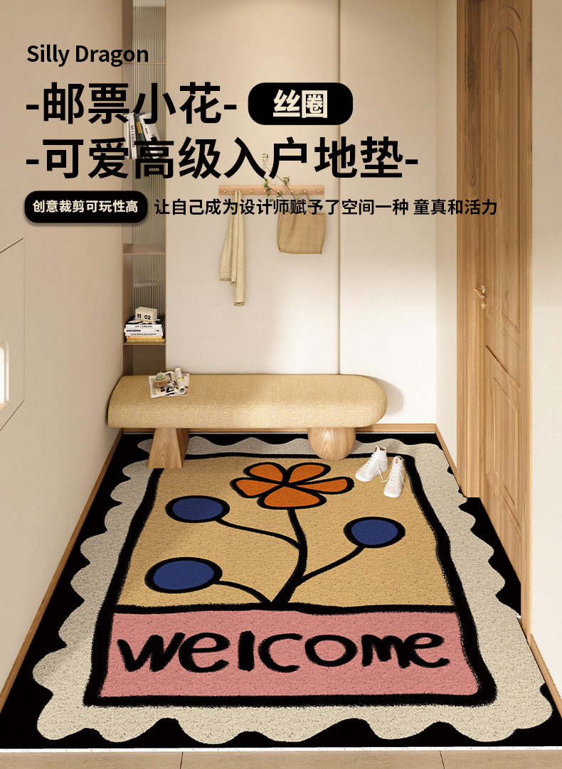 스탬프 플로렛 수평 및 수직 에디션 실크 링 홈 매트 가정용 PVC 실크 링 미끄럼 방지 도어 카펫 절단식 매트스토어 가기