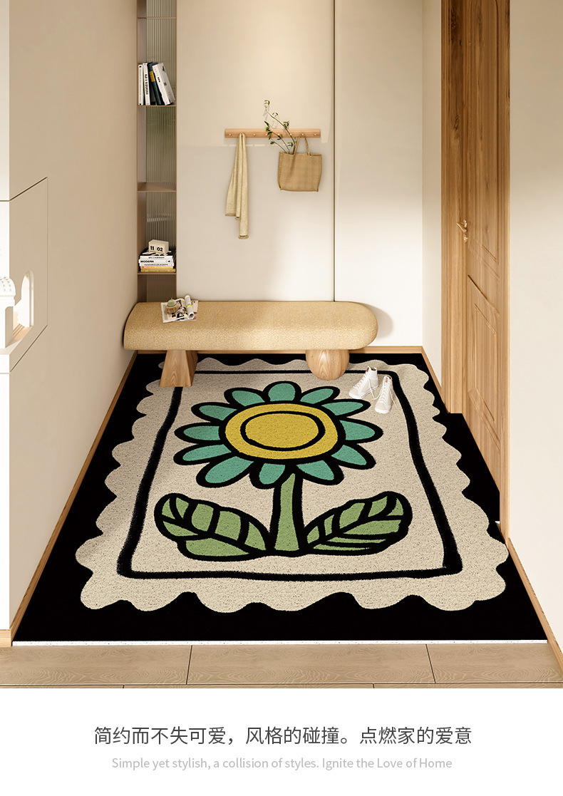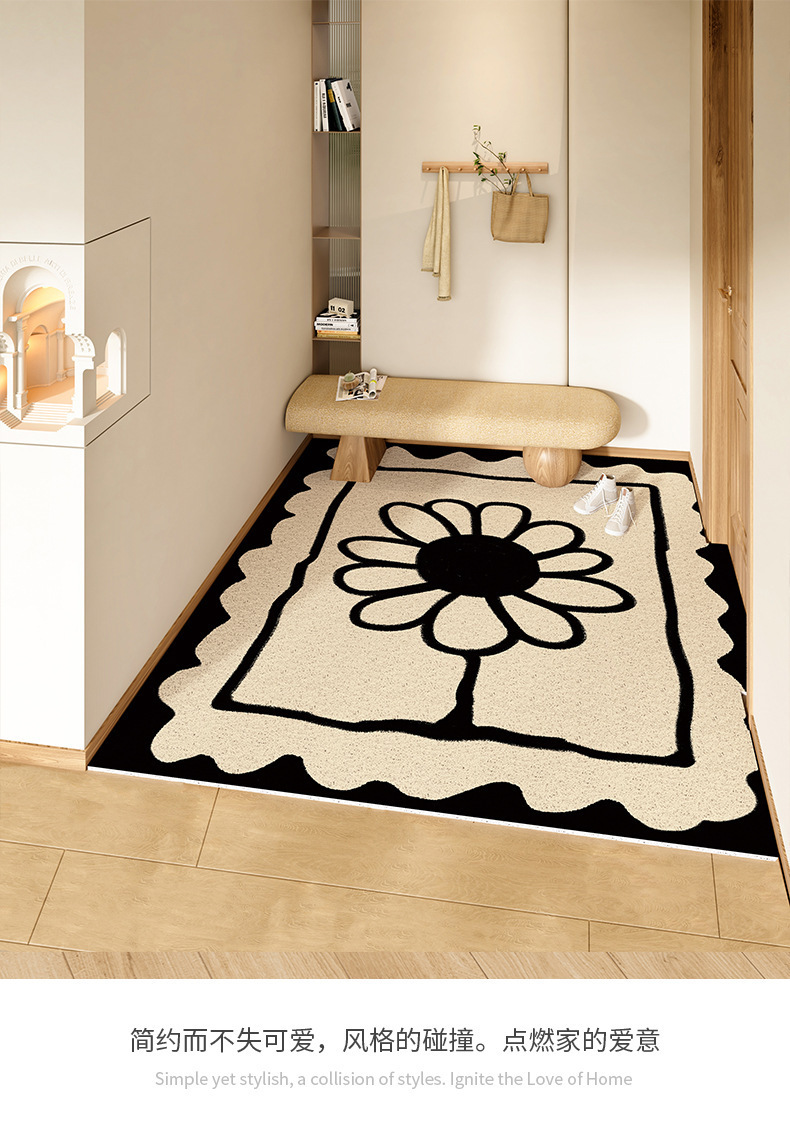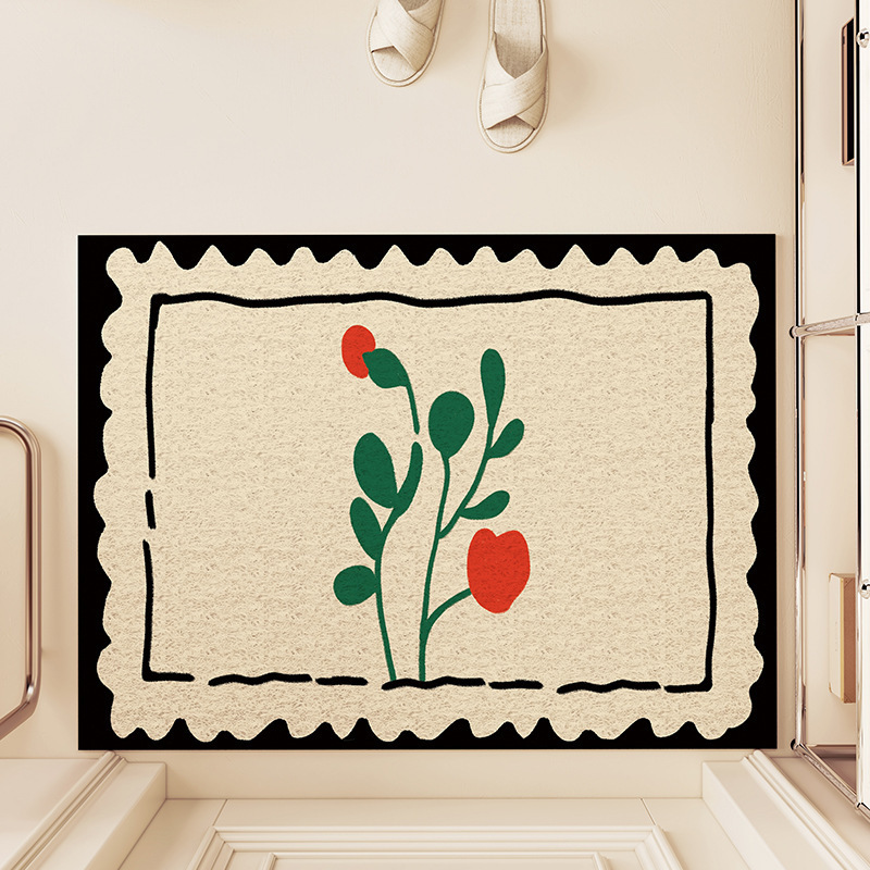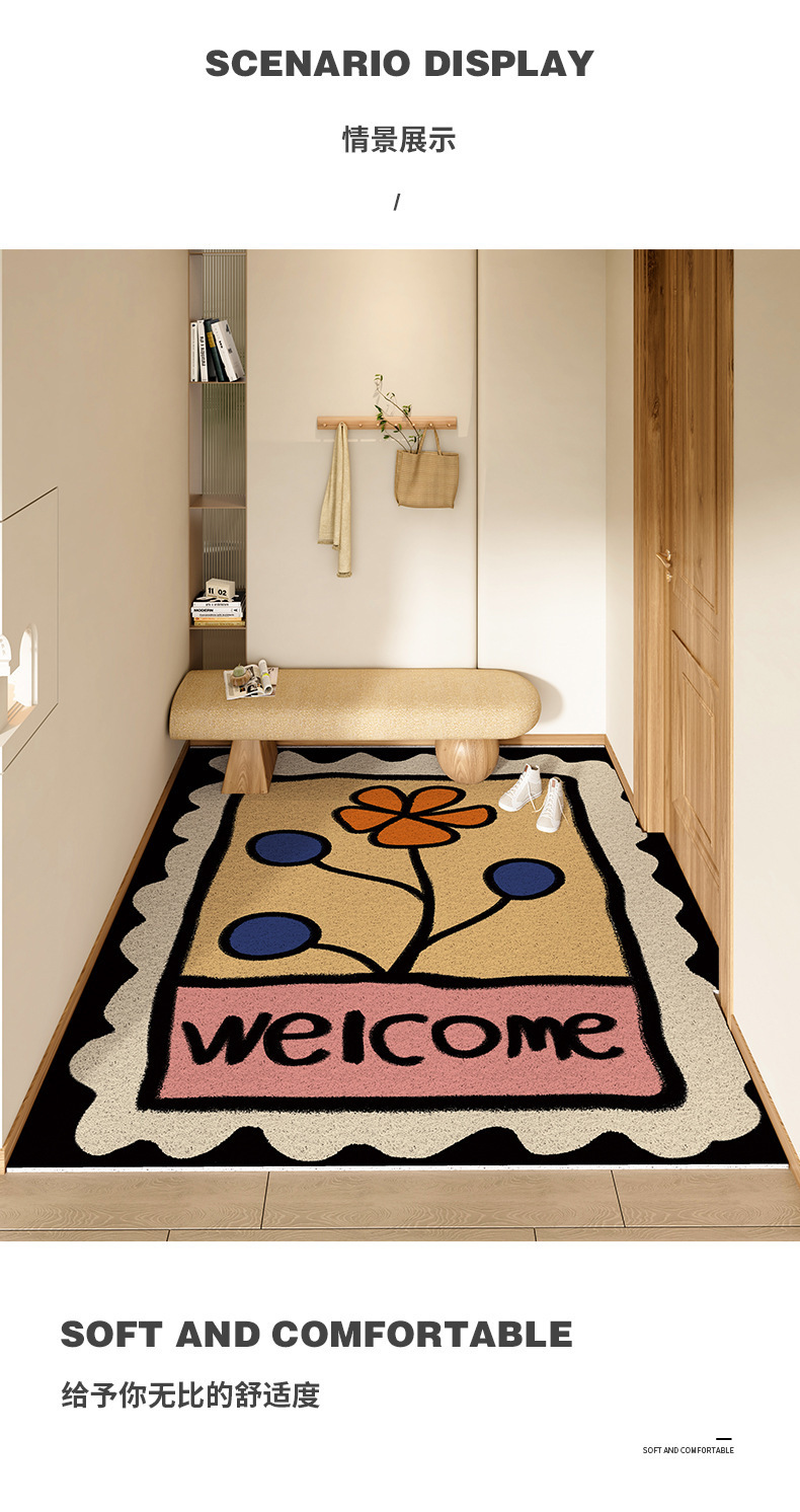 스탬프 플로렛 수평 및 수직 에디션 실크 링 홈 매트 가정용 PVC 실크 링 미끄럼 방지 도어 카펫 절단식 매트스토어 가기