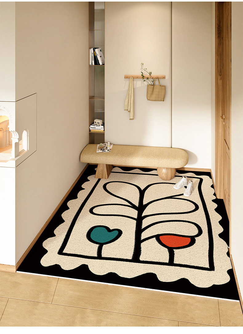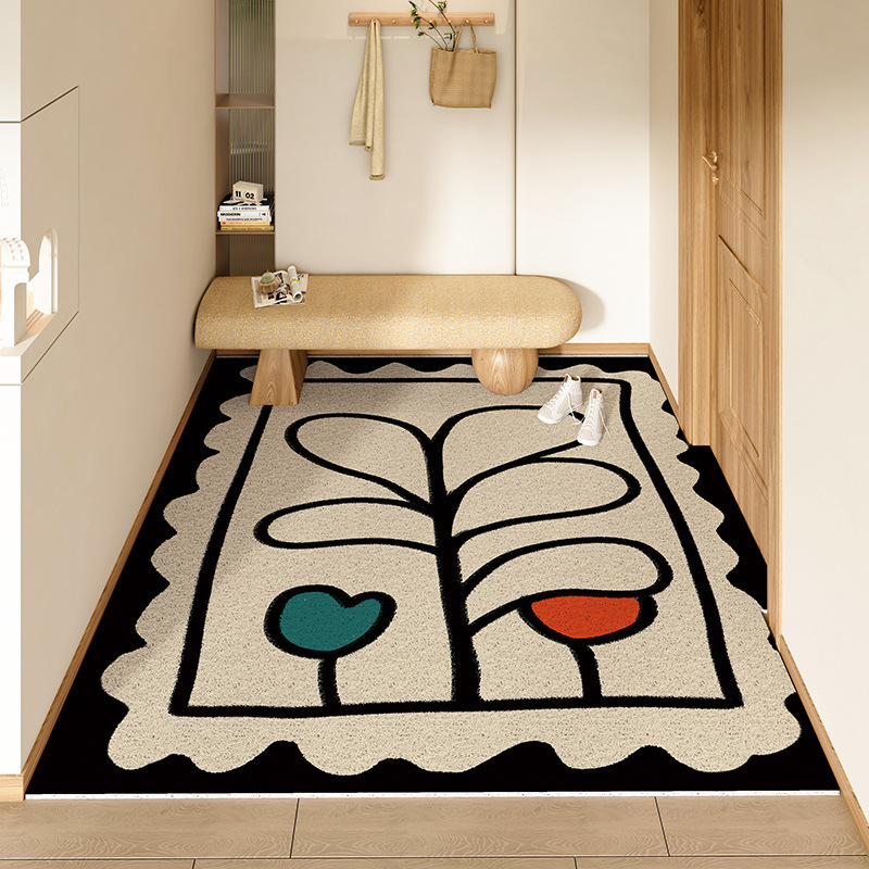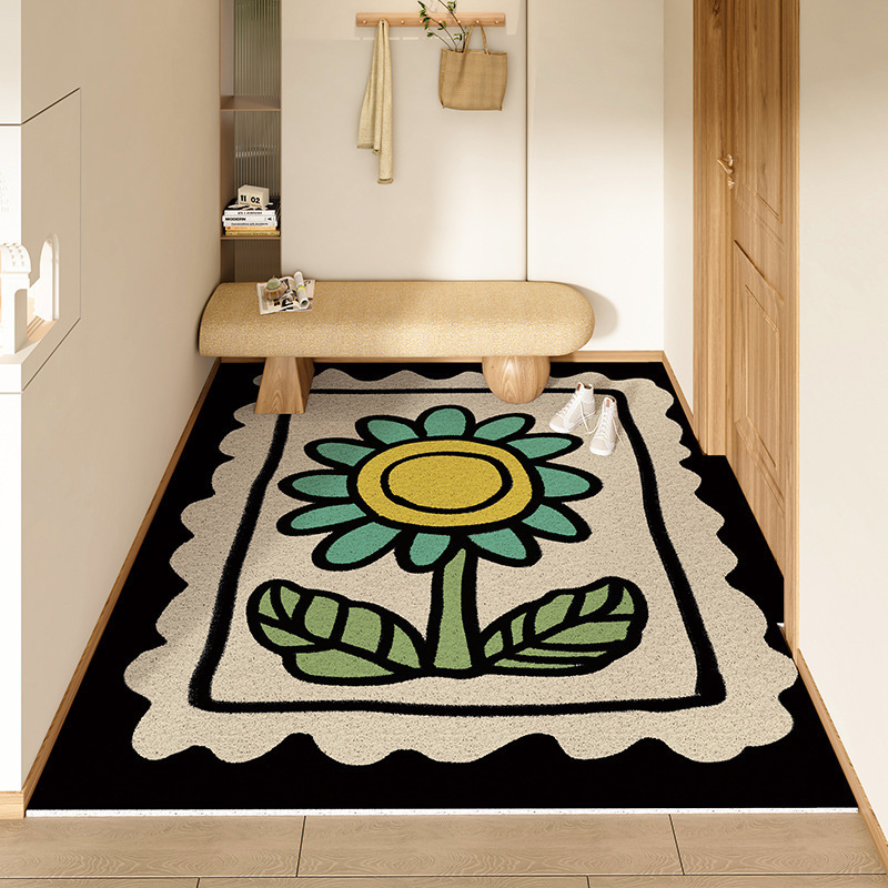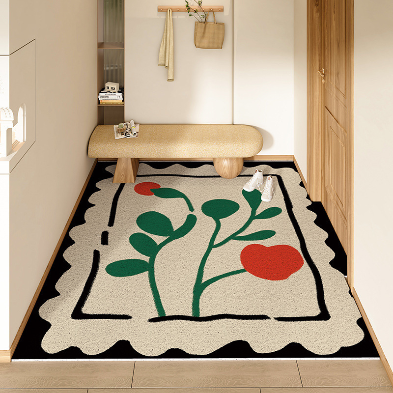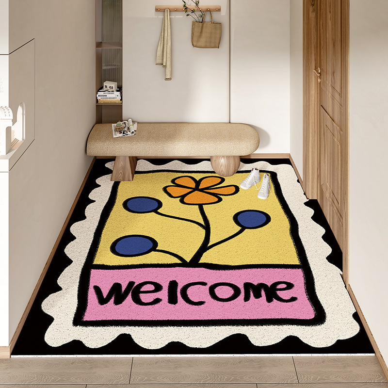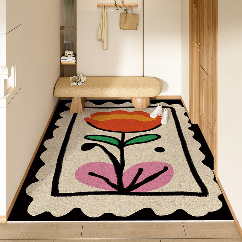 스탬프 플로렛 수평 및 수직 에디션 실크 링 홈 매트 가정용 PVC 실크 링 미끄럼 방지 도어 카펫 절단식 매트