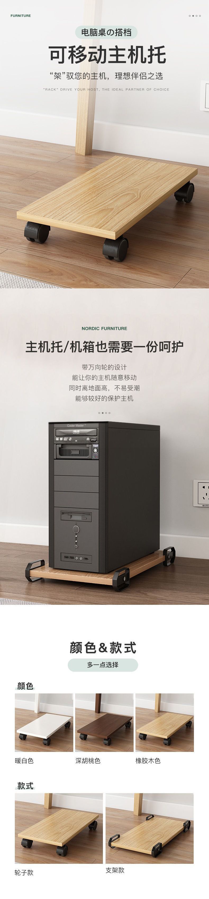 휠 풀리 선반 아래 컴퓨터 호스트 브래킷 데스크탑 모바일 테이블 높은 스토리지 섀시 베이스 트레이스토어 가기