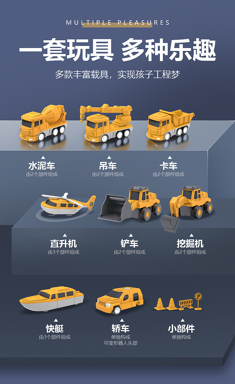 어린이 장난감 다양한 자기 조립 공학 차량 변압기 갑옷 세트 부모-어린이 교육 장난감스토어 가기