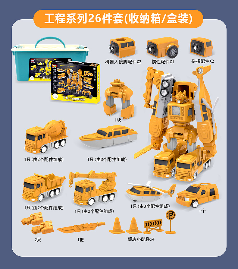 • 엔지니어링 차량 노란색 26개 세트(보관함) 중국어 또는 영어 버전