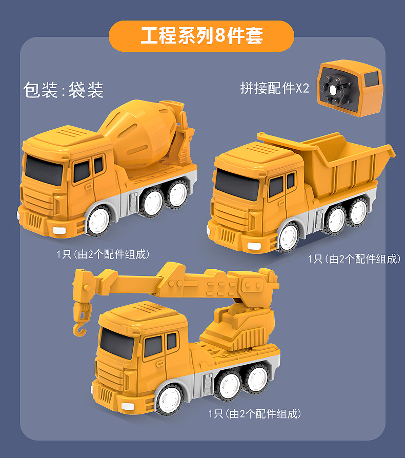 • 엔지니어링 차량 노란색 8종 세트(OPP 가방)