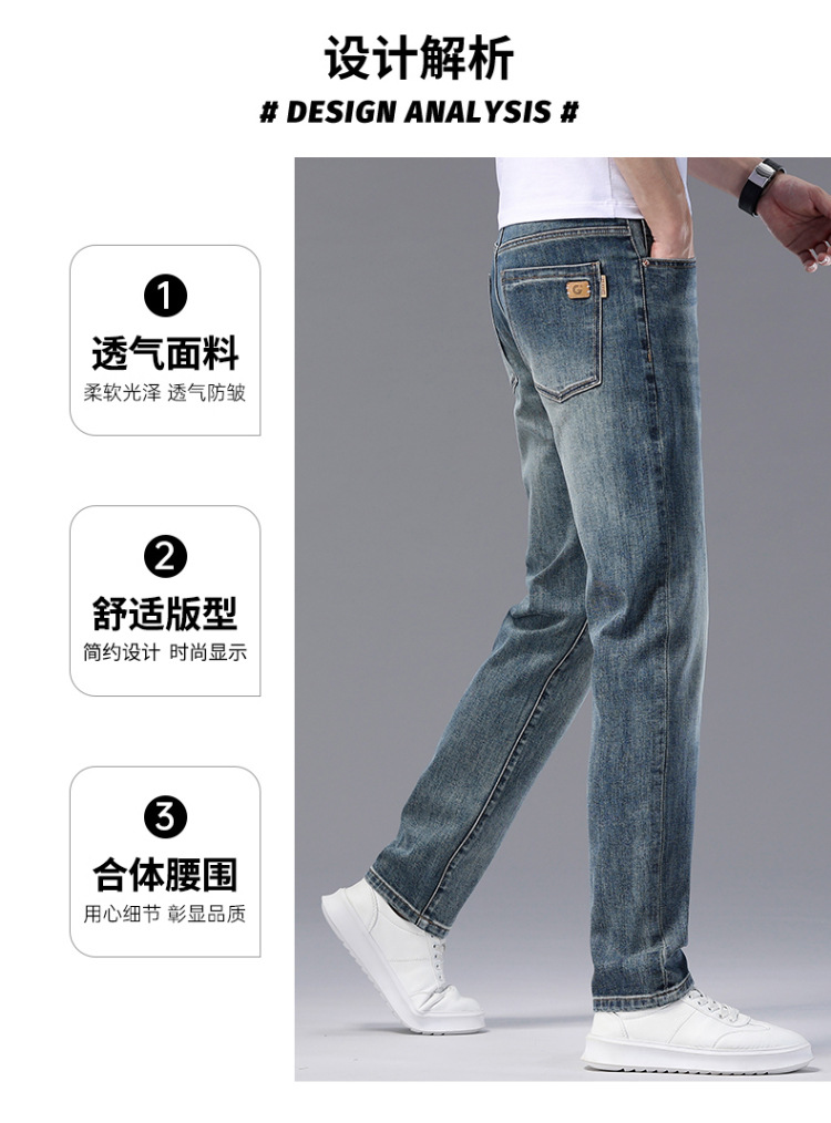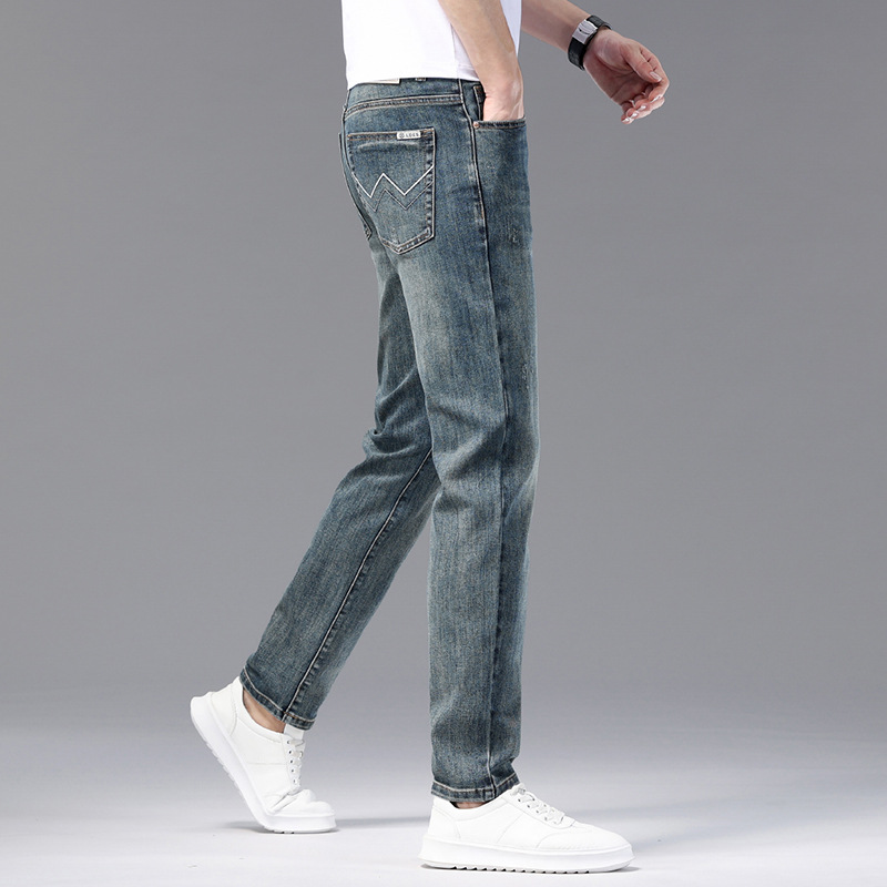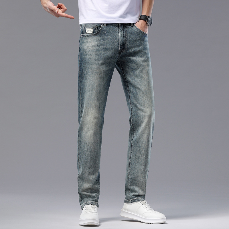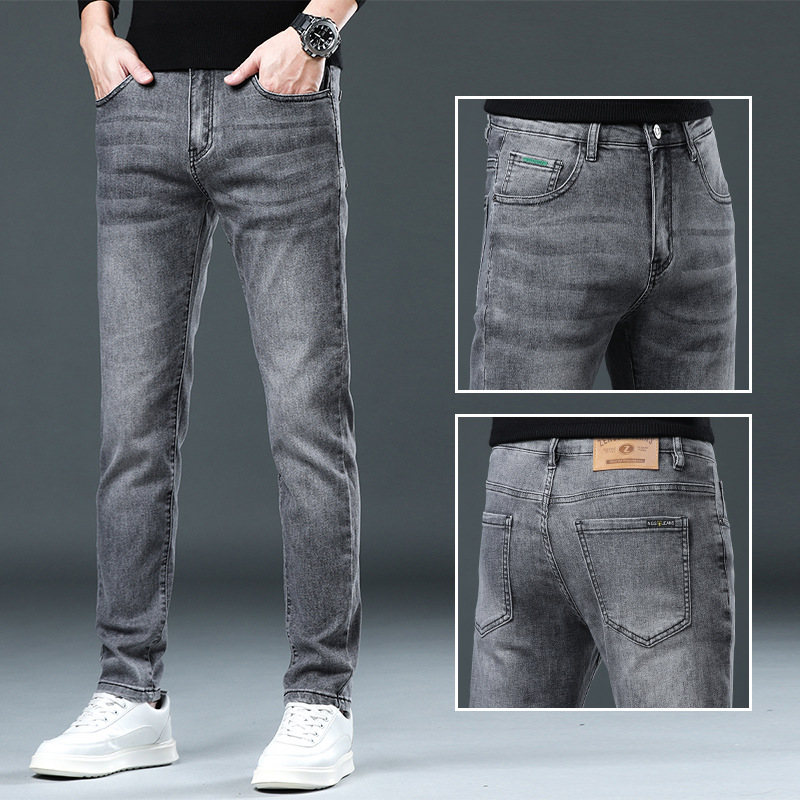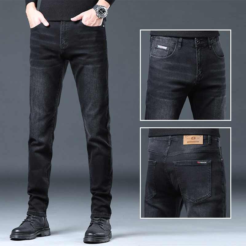 고급 같은 스타일의 남성용 데님 팬츠 가을 겨울용 신상품 신축성 있는 슬림핏 스트레이트 남성 캐주얼 긴바지