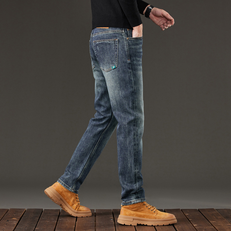 고급 같은 스타일의 남성용 데님 팬츠 가을 겨울용 신상품 신축성 있는 슬림핏 스트레이트 남성 캐주얼 긴바지스토어 가기