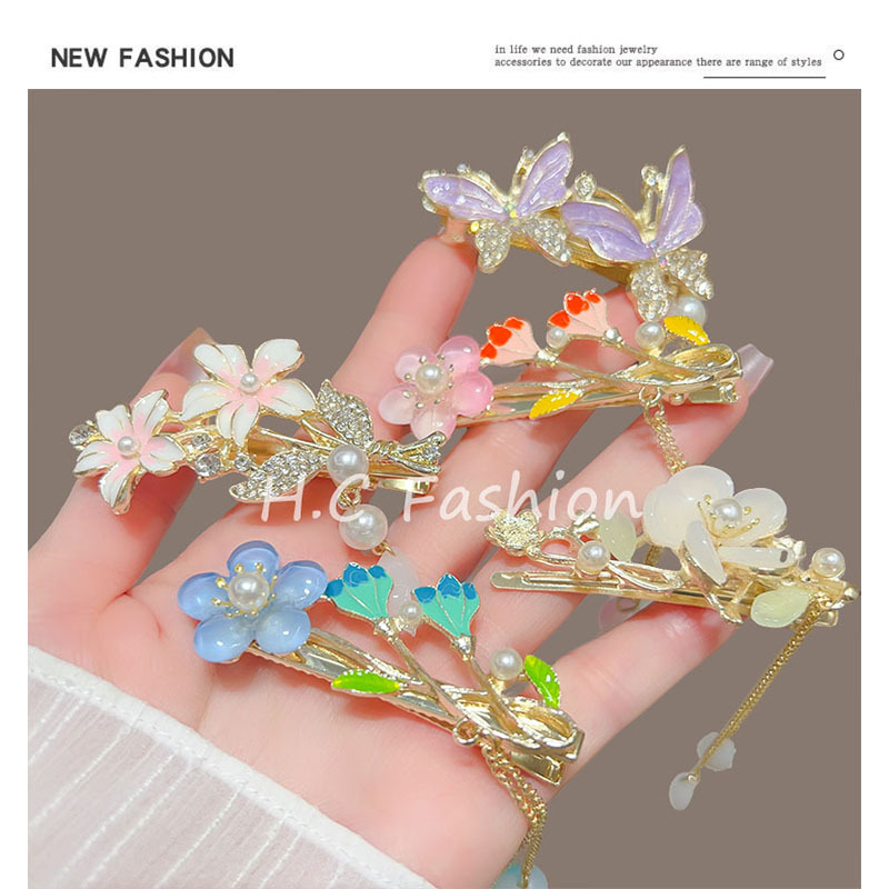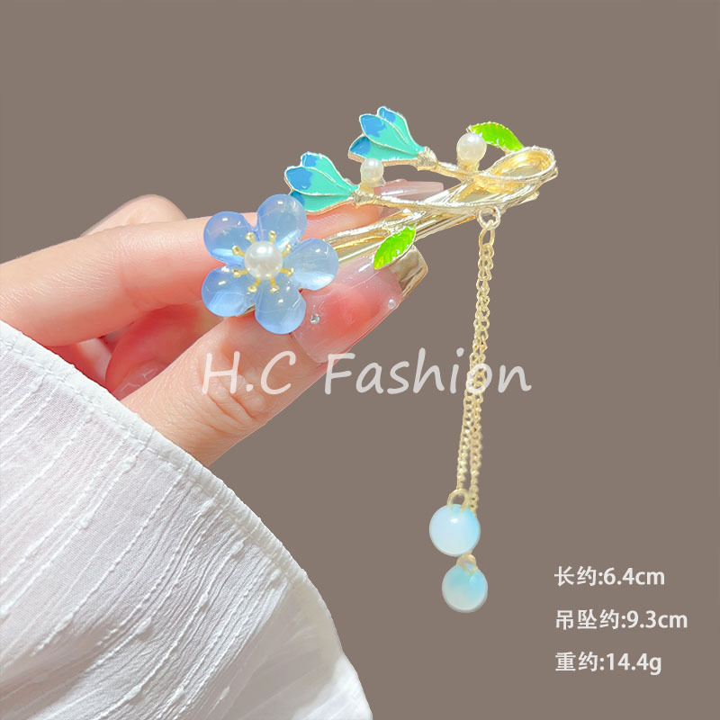 새로운 중국 스타일 골동품 꽃 술 헤어핀 여성의 봄과 여름 새로운 덕빌 클립 유행 머리핀 방귀 클립 클립 클립 클립