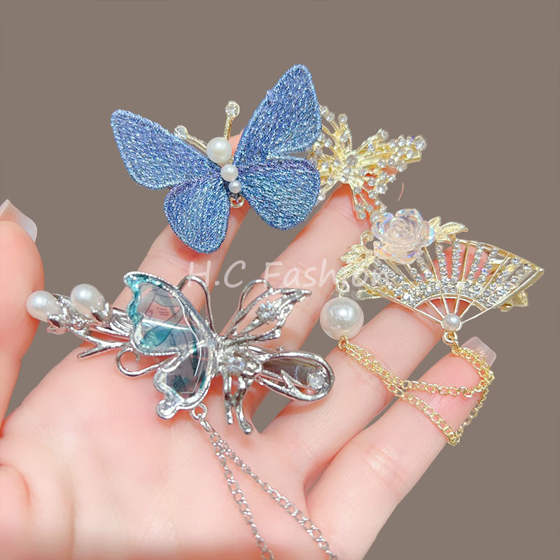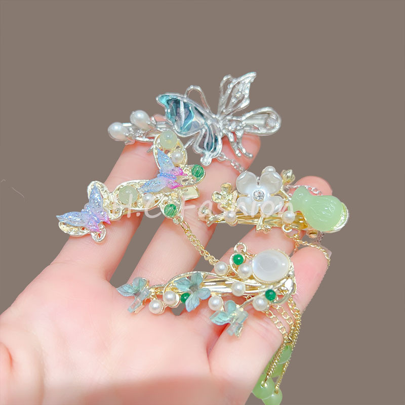 새로운 중국 스타일 골동품 꽃 술 헤어핀 여성의 봄과 여름 새로운 덕빌 클립 유행 머리핀 방귀 클립 클립 클립 클립스토어 가기