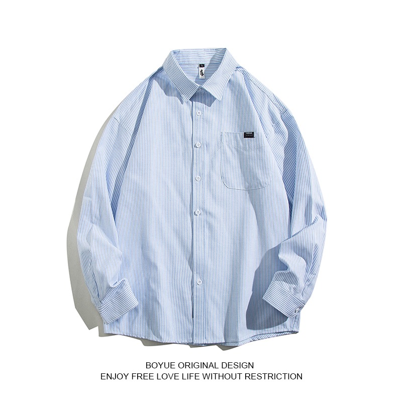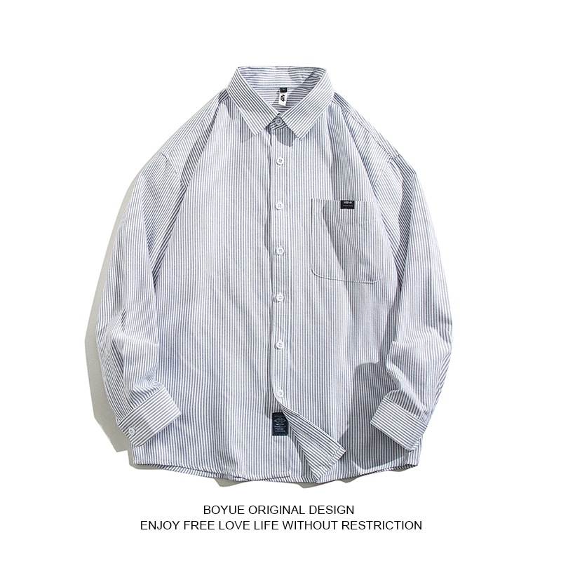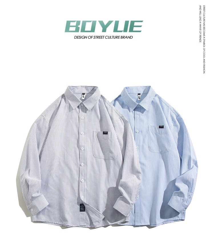 캐주얼 스트라이프 긴팔 셔츠 남자의 봄과 가을 홍콩 스타일 셔츠 루즈 트렌디 브랜드 하이 엔드 느낌 강아지 핸섬 캐주얼 자켓스토어 가기