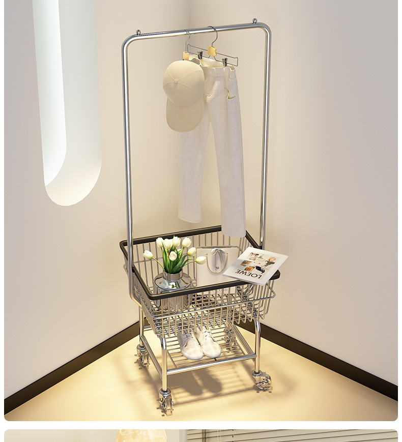 코트 랙 하룻밤 가구 건조 옷걸이 바닥 침실 보관 랙 보관 랙 이동식 옷걸이 카트 옷 바구니스토어 가기