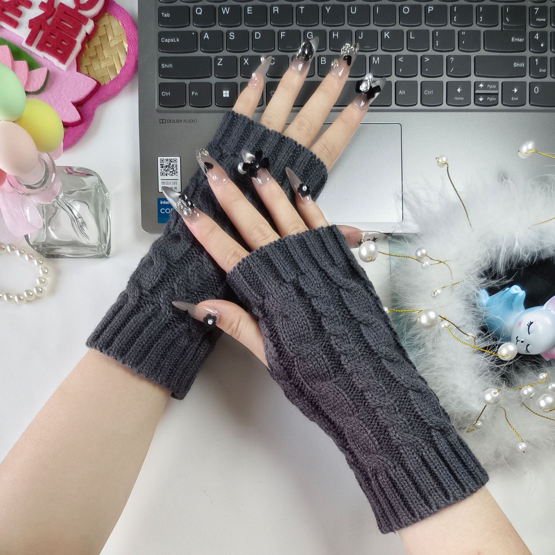 패셔너블하고 심플한 니트 반장갑 남녀공용 짧은 손목형 글쓰기 방한 보온 두꺼운 겨울용스토어 가기