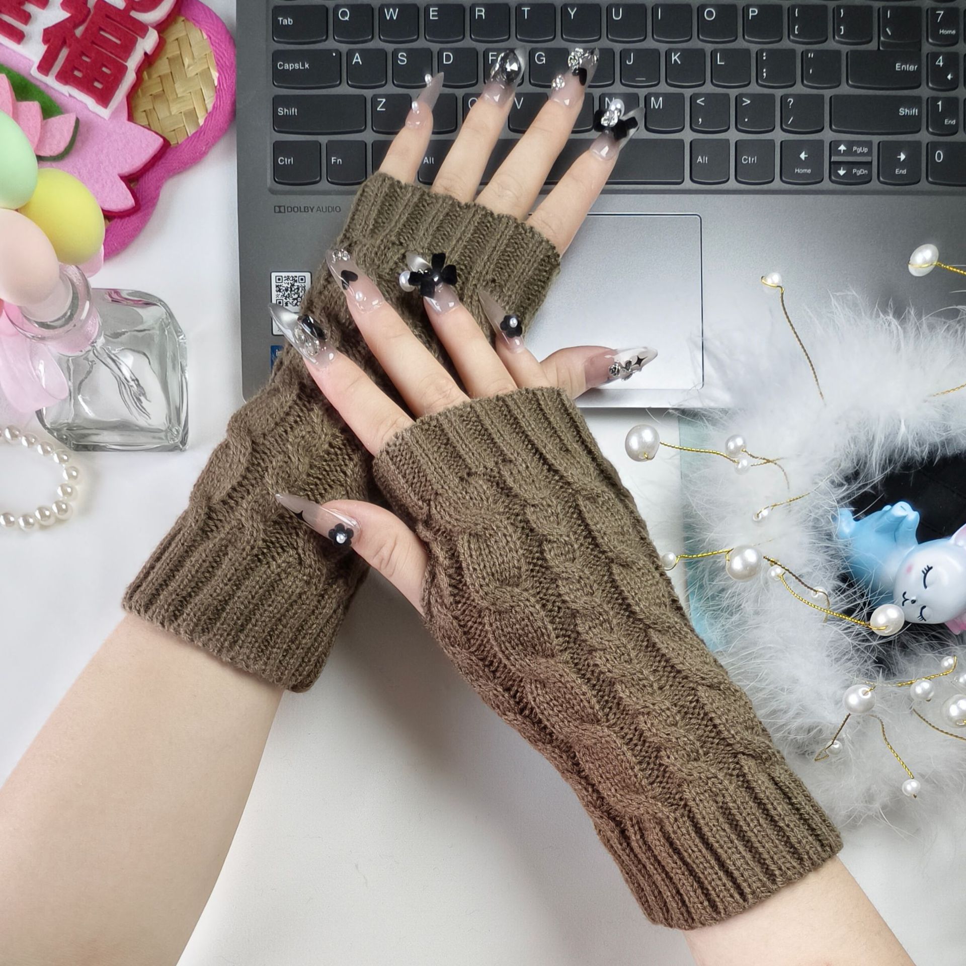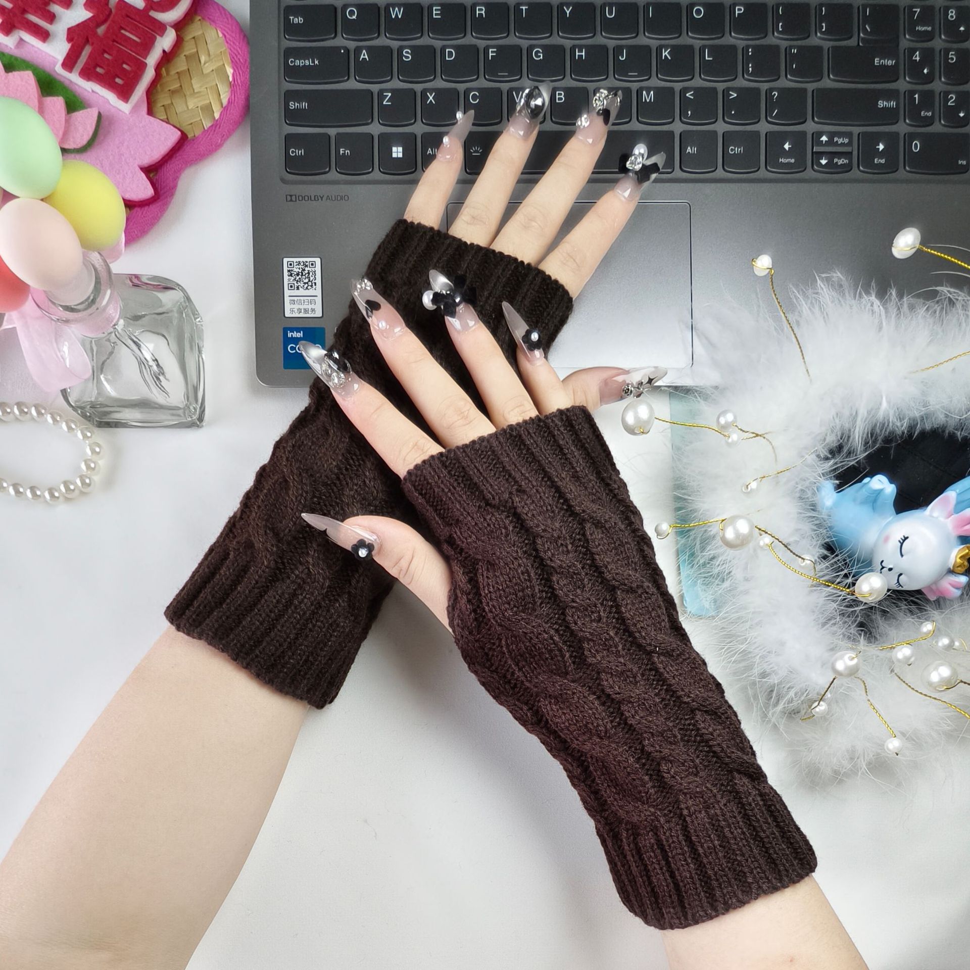 패셔너블하고 심플한 니트 반장갑 남녀공용 짧은 손목형 글쓰기 방한 보온 두꺼운 겨울용
