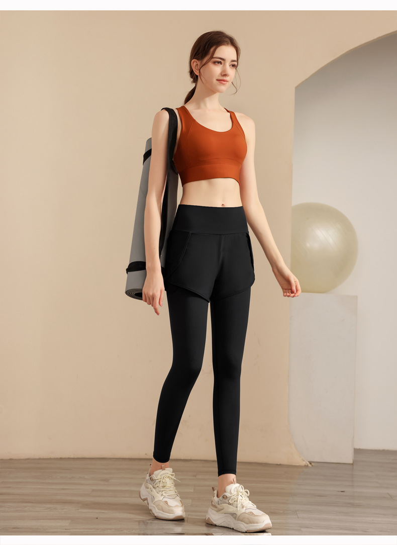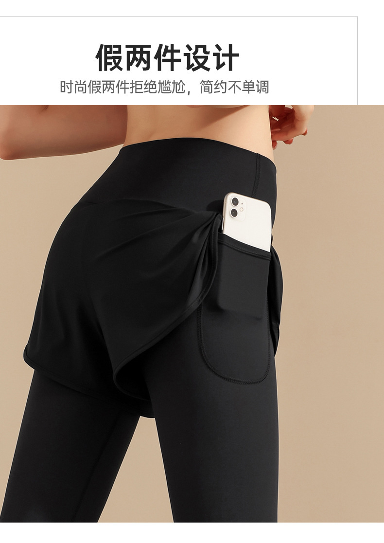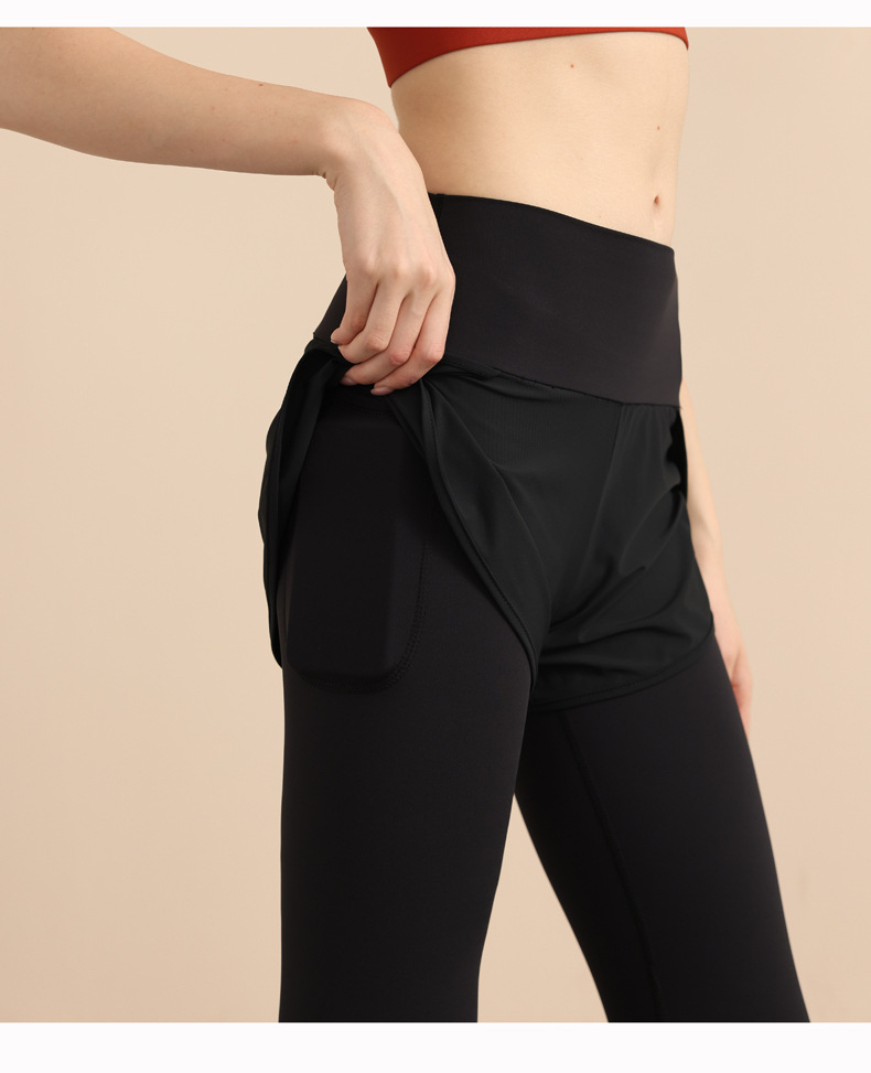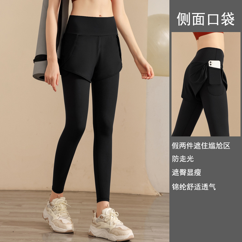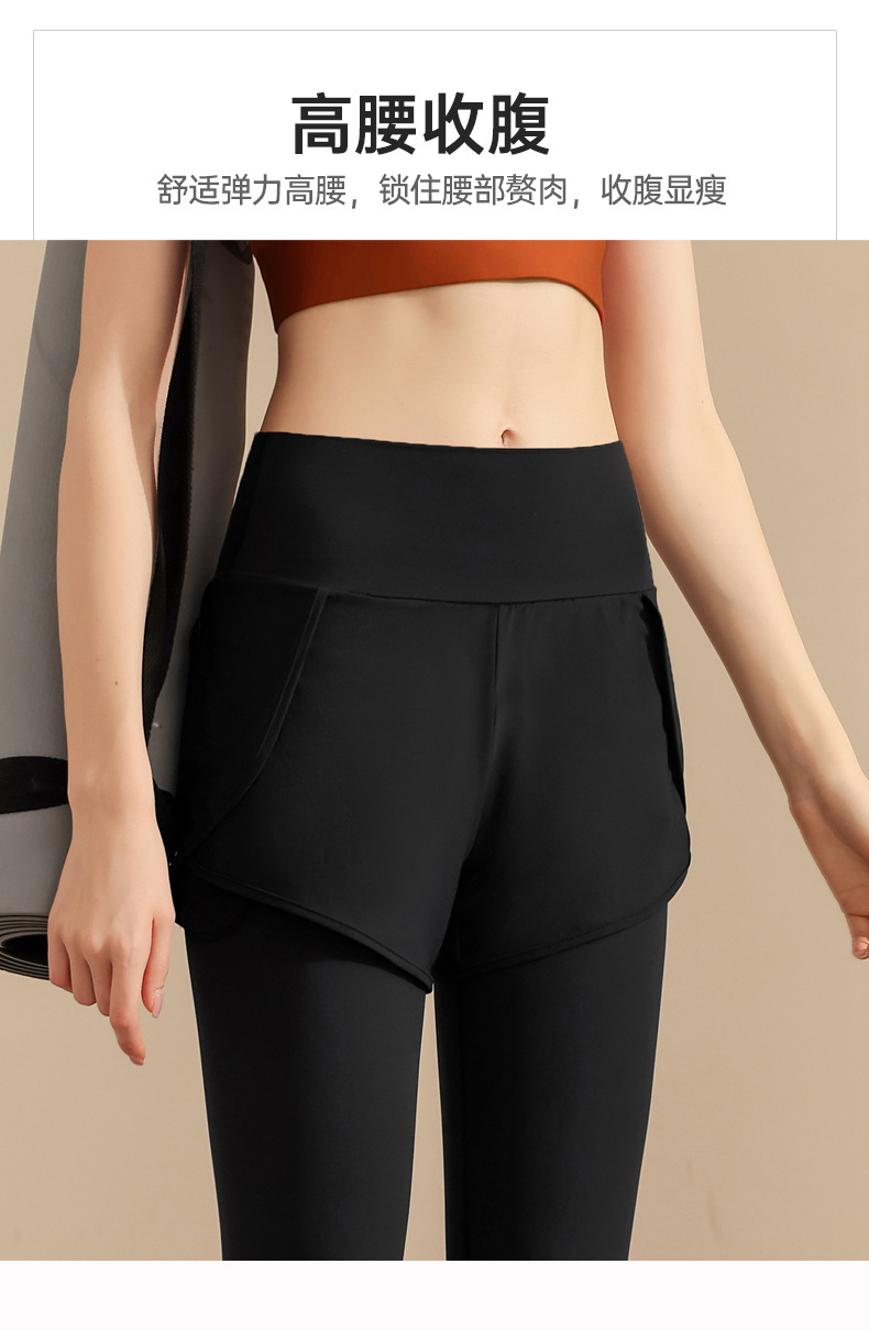 스포츠 요가 의류 높은 허리 가짜 투피스 안티 슬림 스포츠 바지 벨리 타이트 빠른 건조 타이트 달리기 외부 착용 피트니스 바지