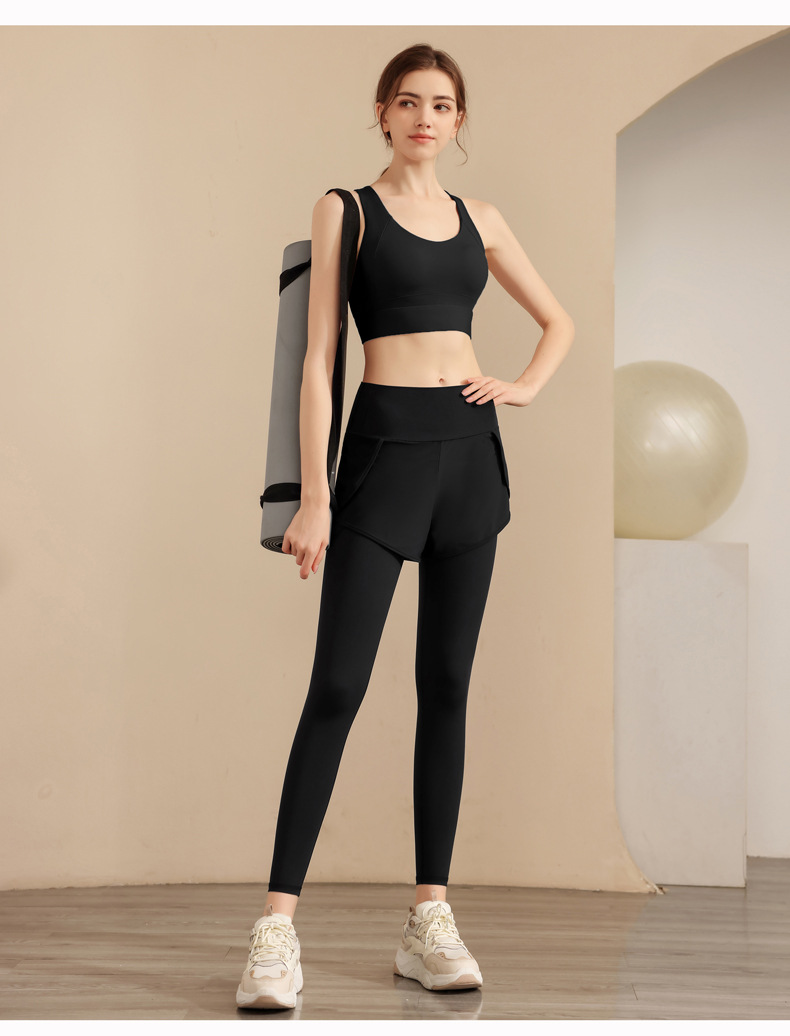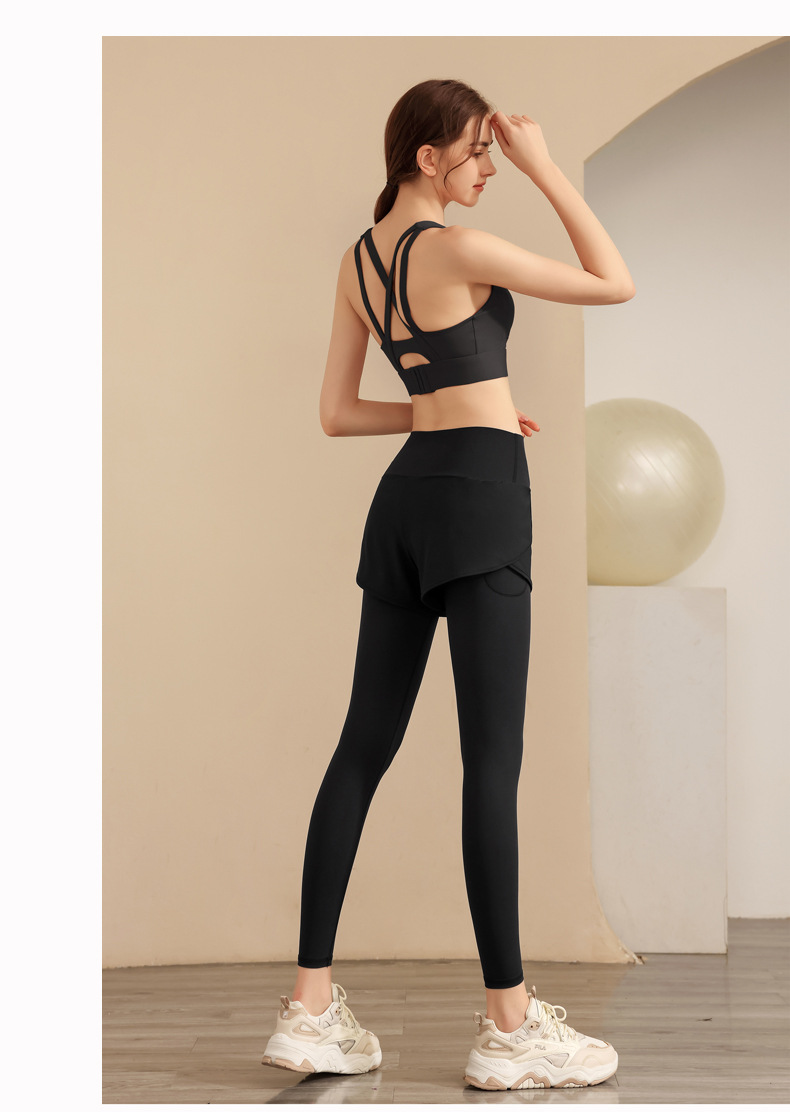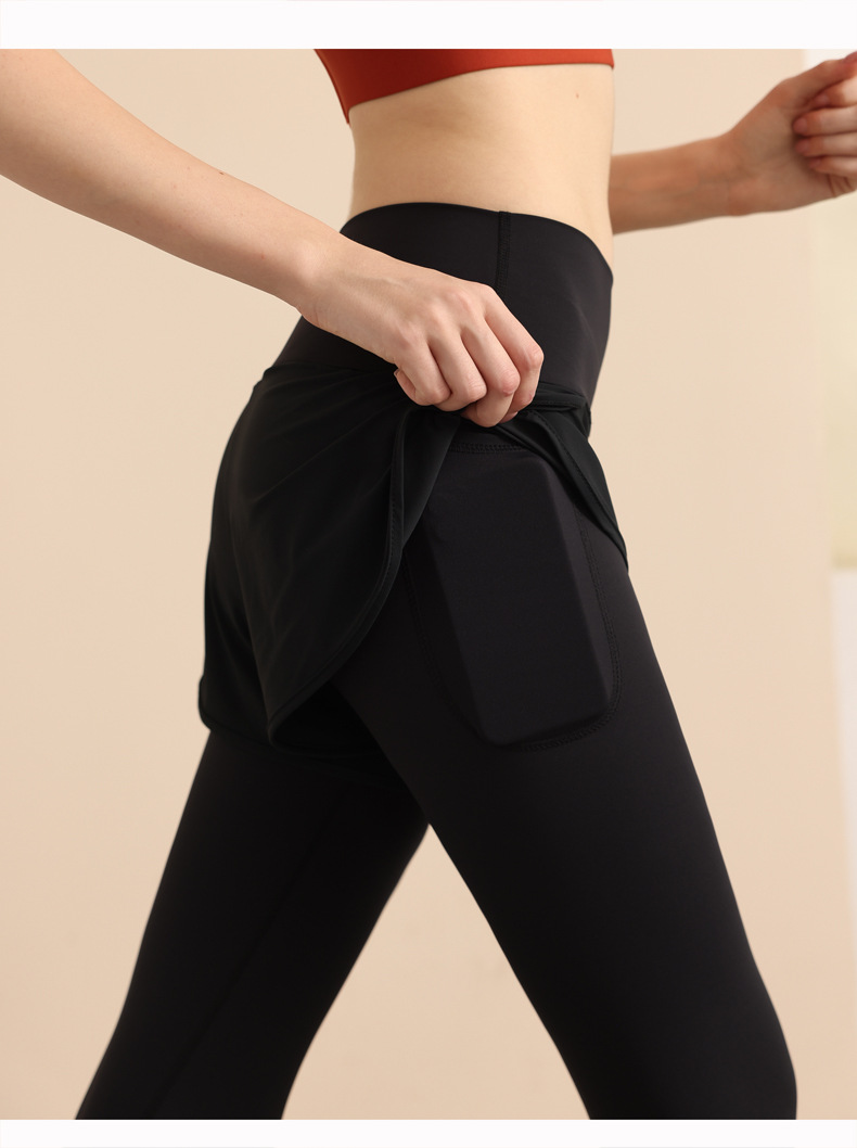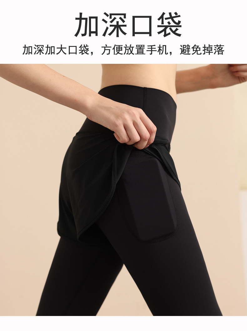 스포츠 요가 의류 높은 허리 가짜 투피스 안티 슬림 스포츠 바지 벨리 타이트 빠른 건조 타이트 달리기 외부 착용 피트니스 바지
