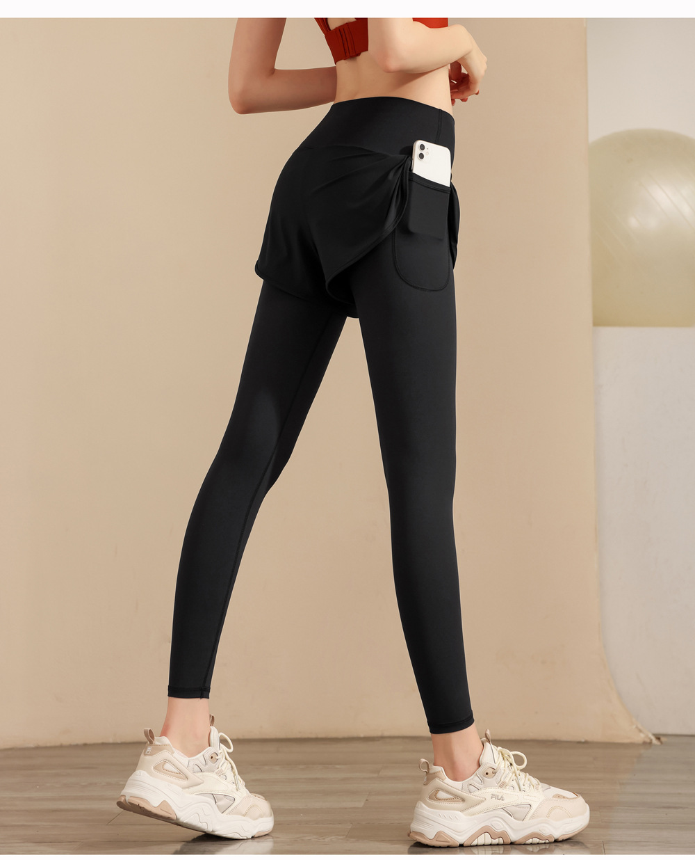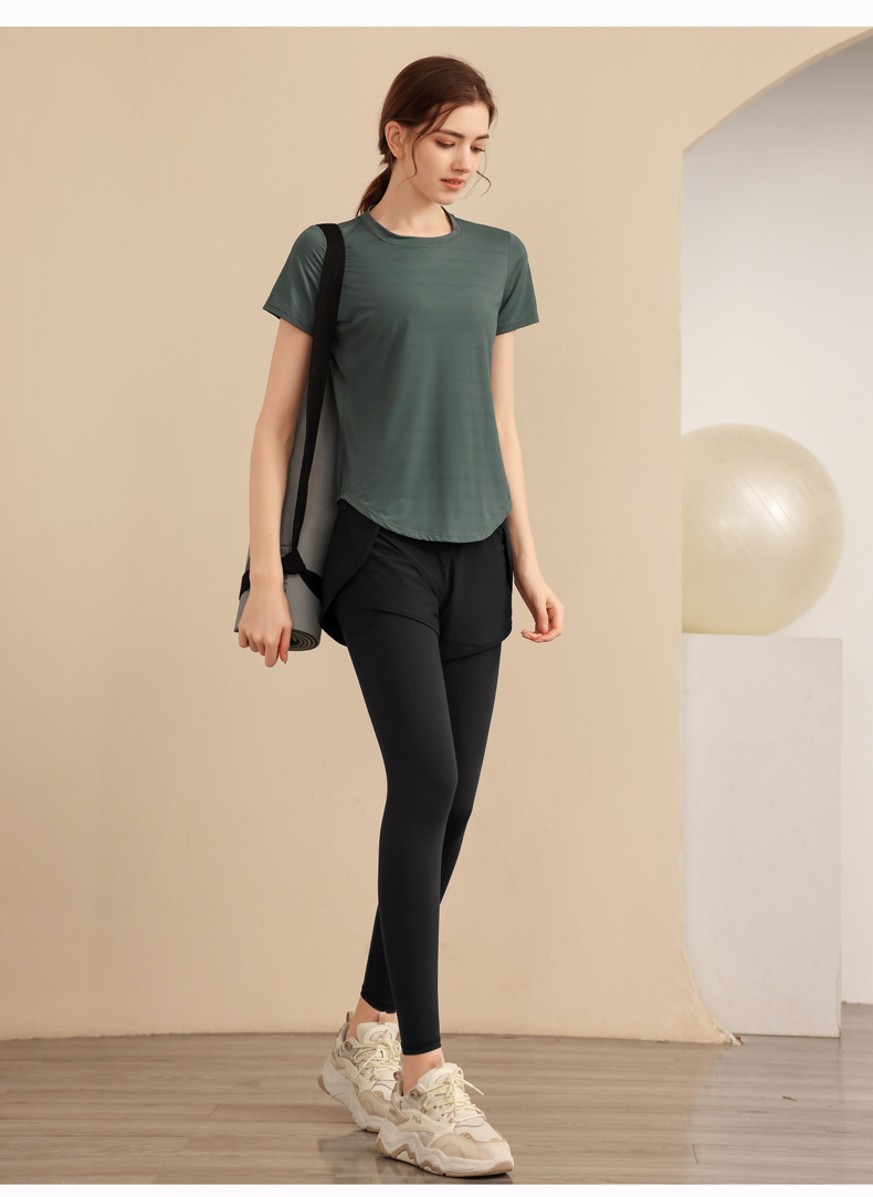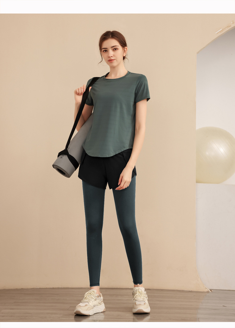 스포츠 요가 의류 높은 허리 가짜 투피스 안티 슬림 스포츠 바지 벨리 타이트 빠른 건조 타이트 달리기 외부 착용 피트니스 바지스토어 가기