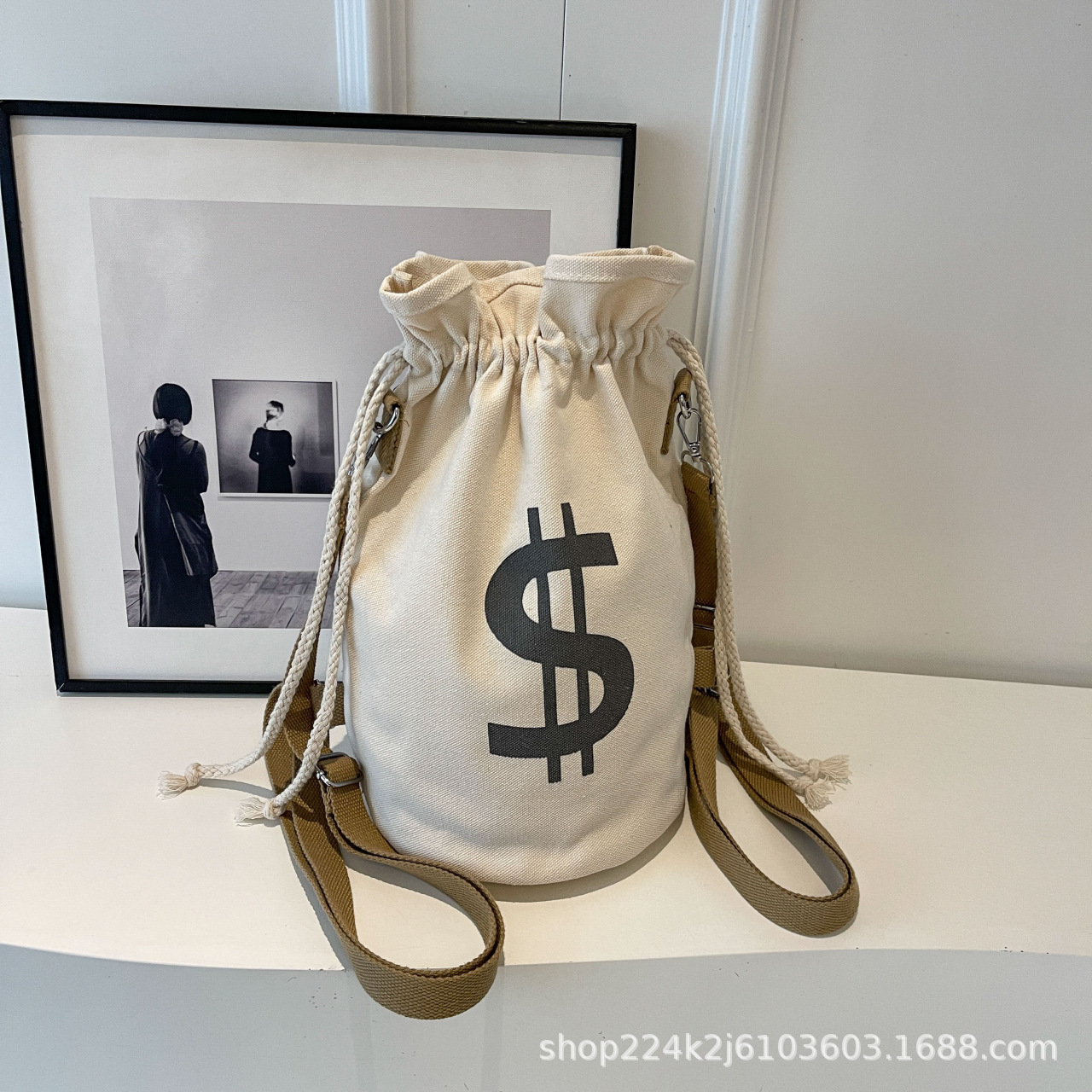 새로운 디자인 센스 버킷 가방 유행 올 매치 멀티 사용 캔버스 가방 개인화 된 간단한 배낭 하이 엔드 센스 트렌디 백팩
