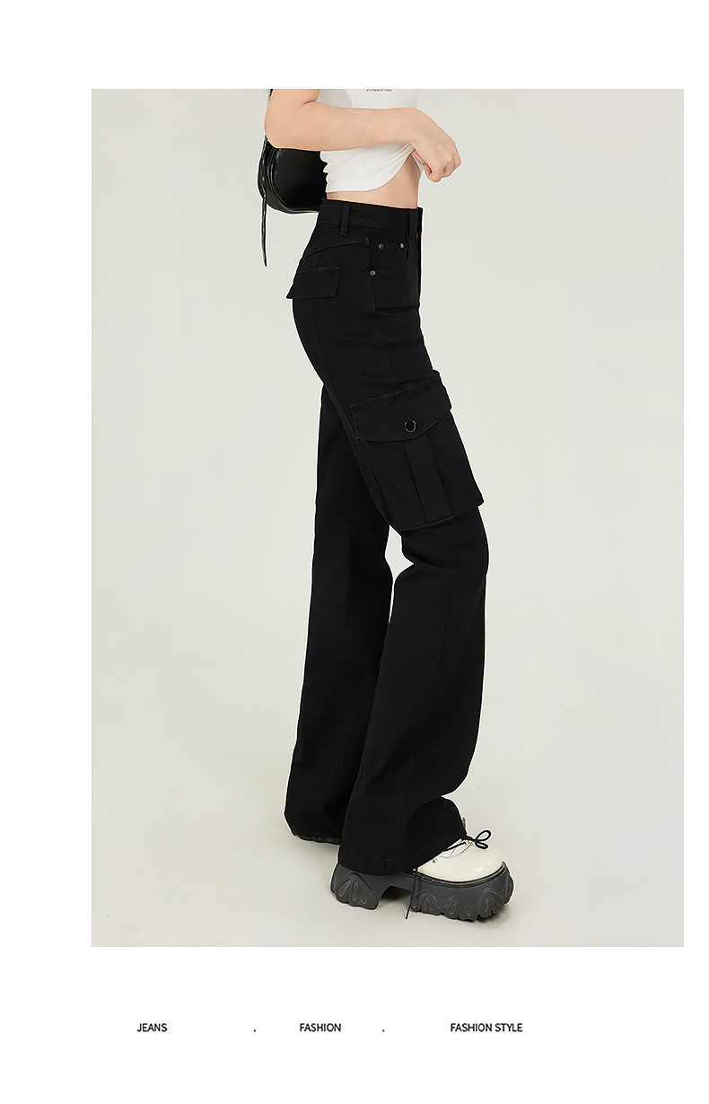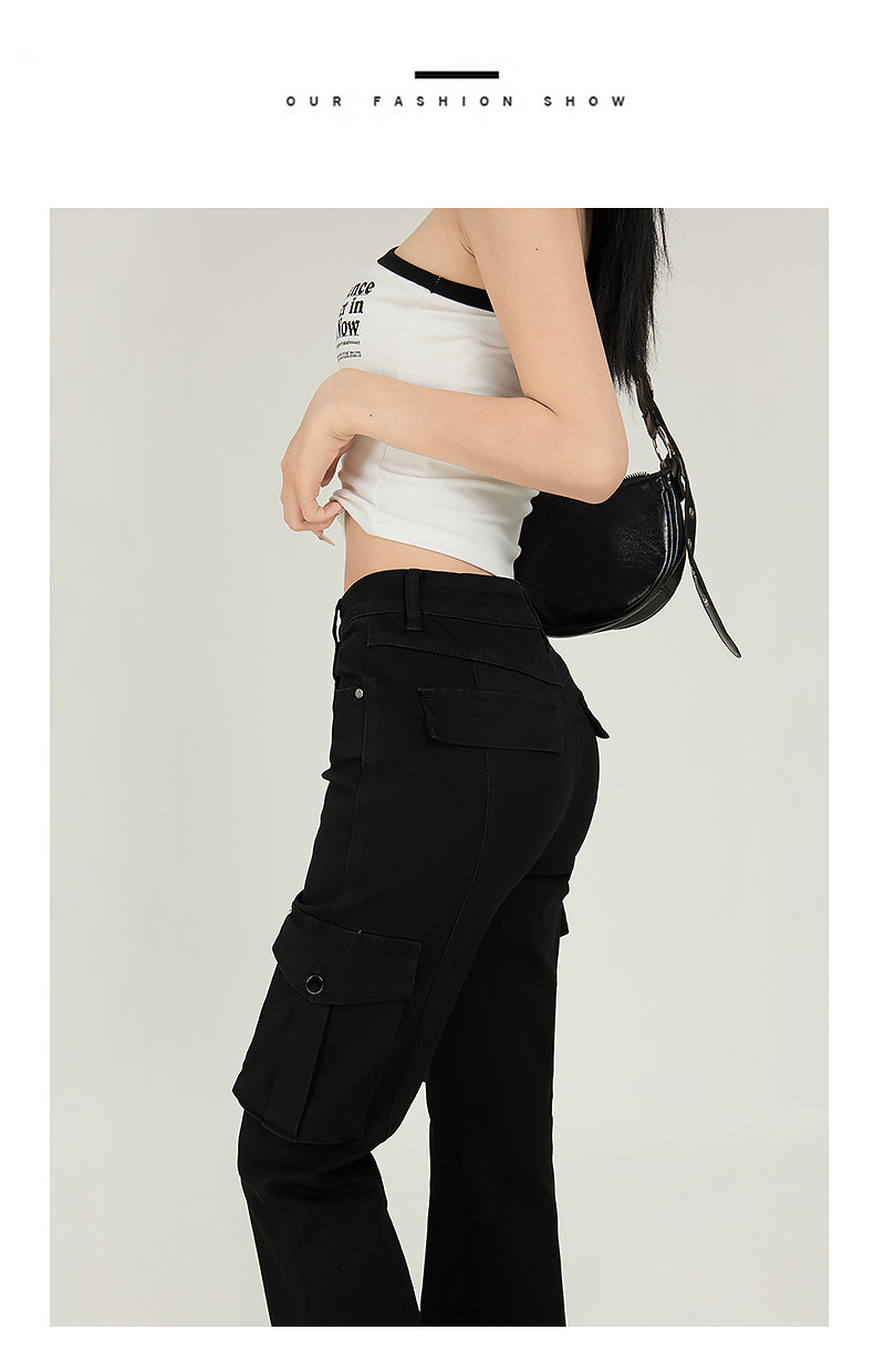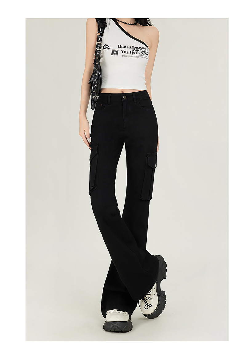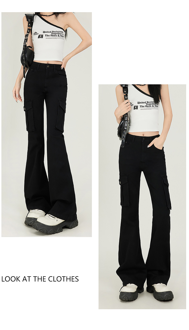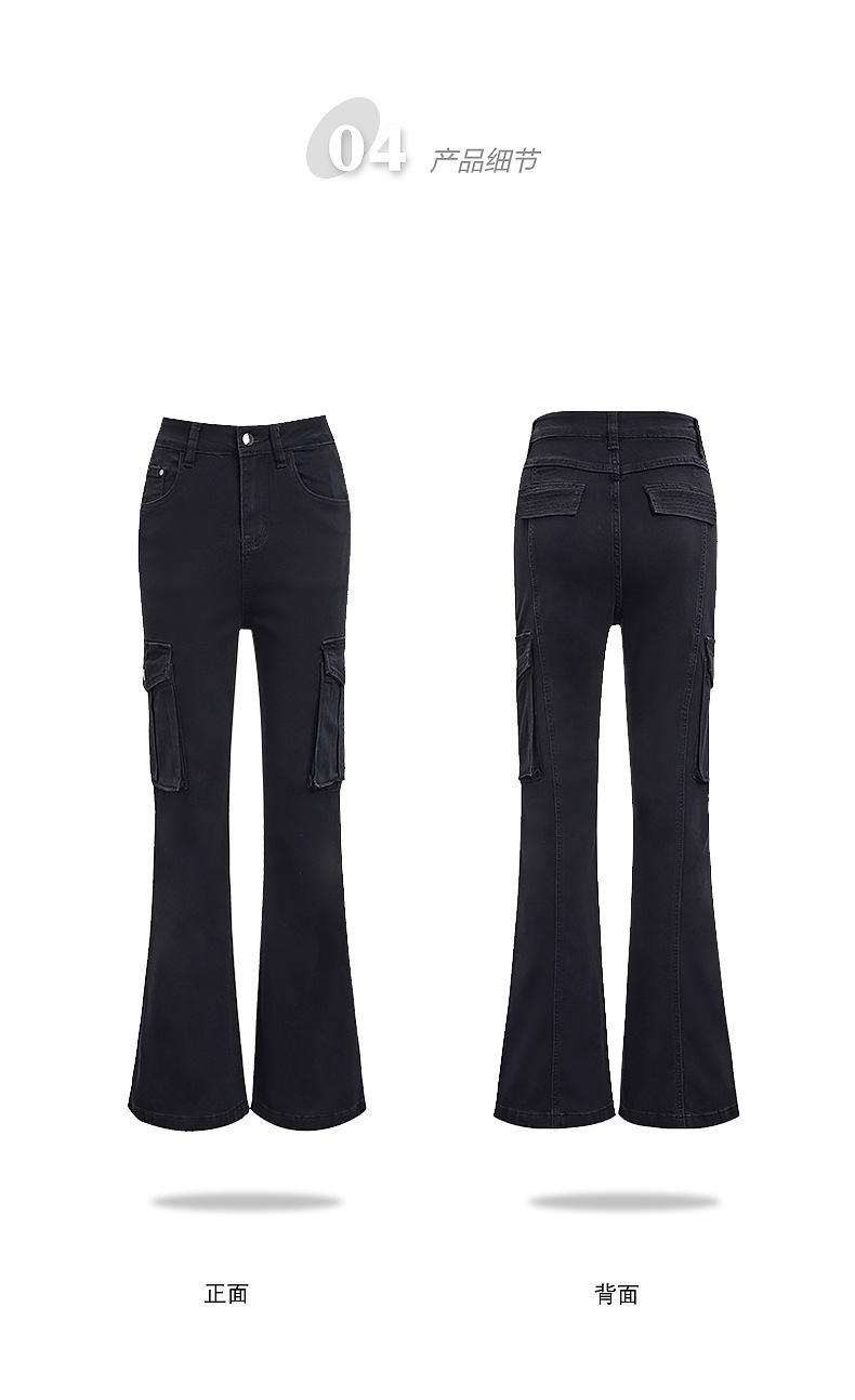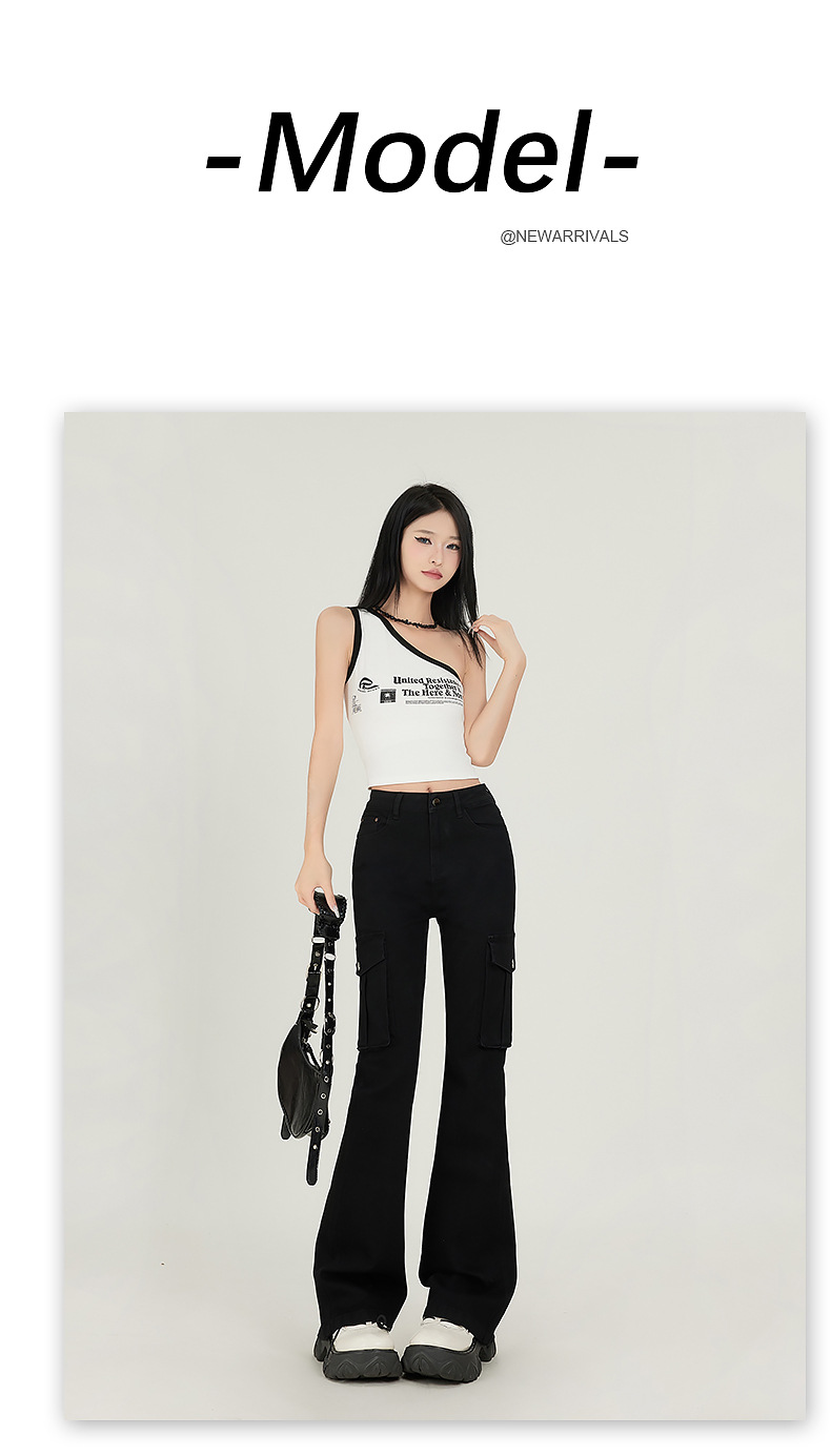 여름 새로운 미국식 작업복 마이크로 팬츠 여성 디자인 센스 높은 허리 플래 팬츠 도포 캐주얼 말굽 바지스토어 가기