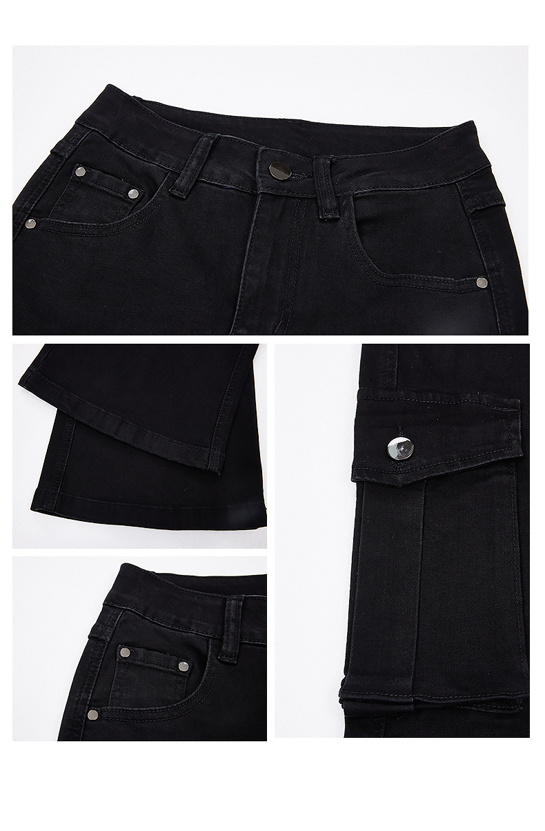여름 새로운 미국식 작업복 마이크로 팬츠 여성 디자인 센스 높은 허리 플래 팬츠 도포 캐주얼 말굽 바지
