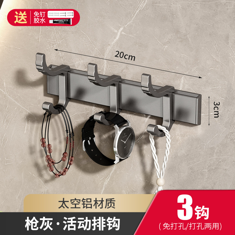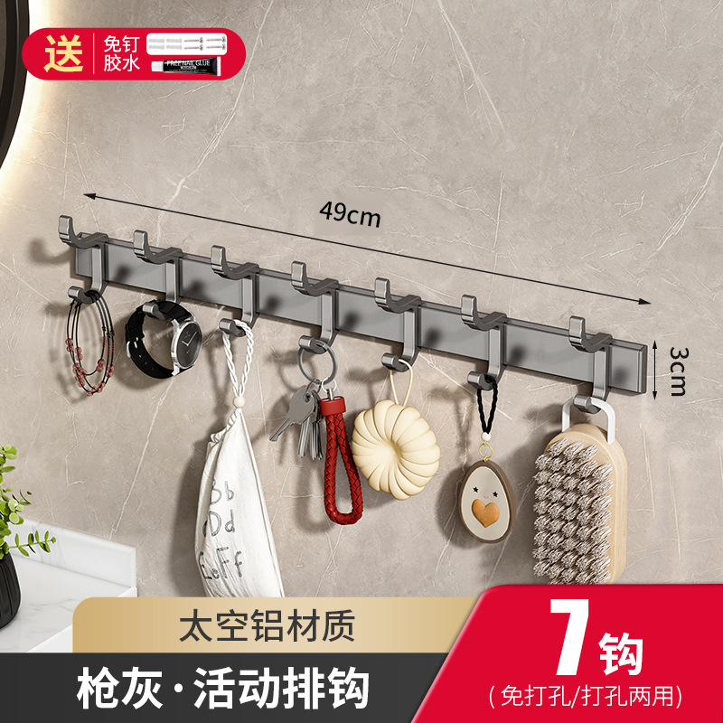 펀치 프리 화장실 두꺼운 끈적 끈적한 후크 옷장 욕실 벽 걸이 공간 알루미늄 벽 교수형 다기능 활동 후크