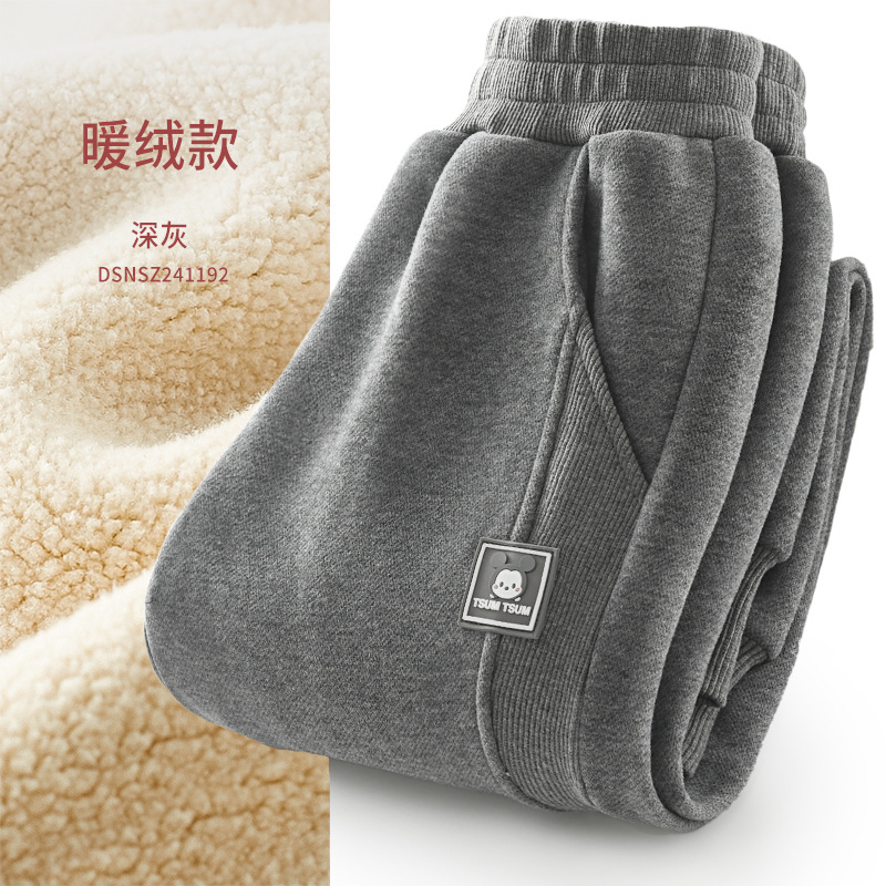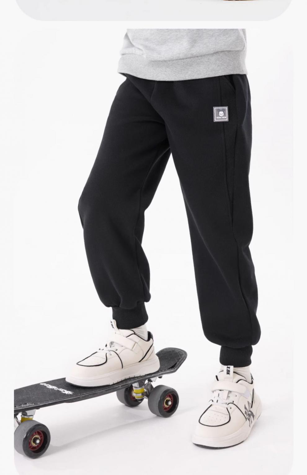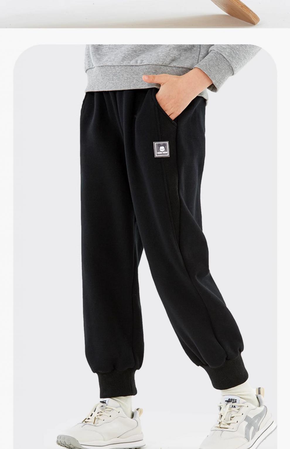 남아용 바지 2025 가을 겨울 신상 아동 스포츠 바지, 중대형 아동용 벨벳 두꺼운 스웨트팬츠, 검은색 아동복스토어 가기