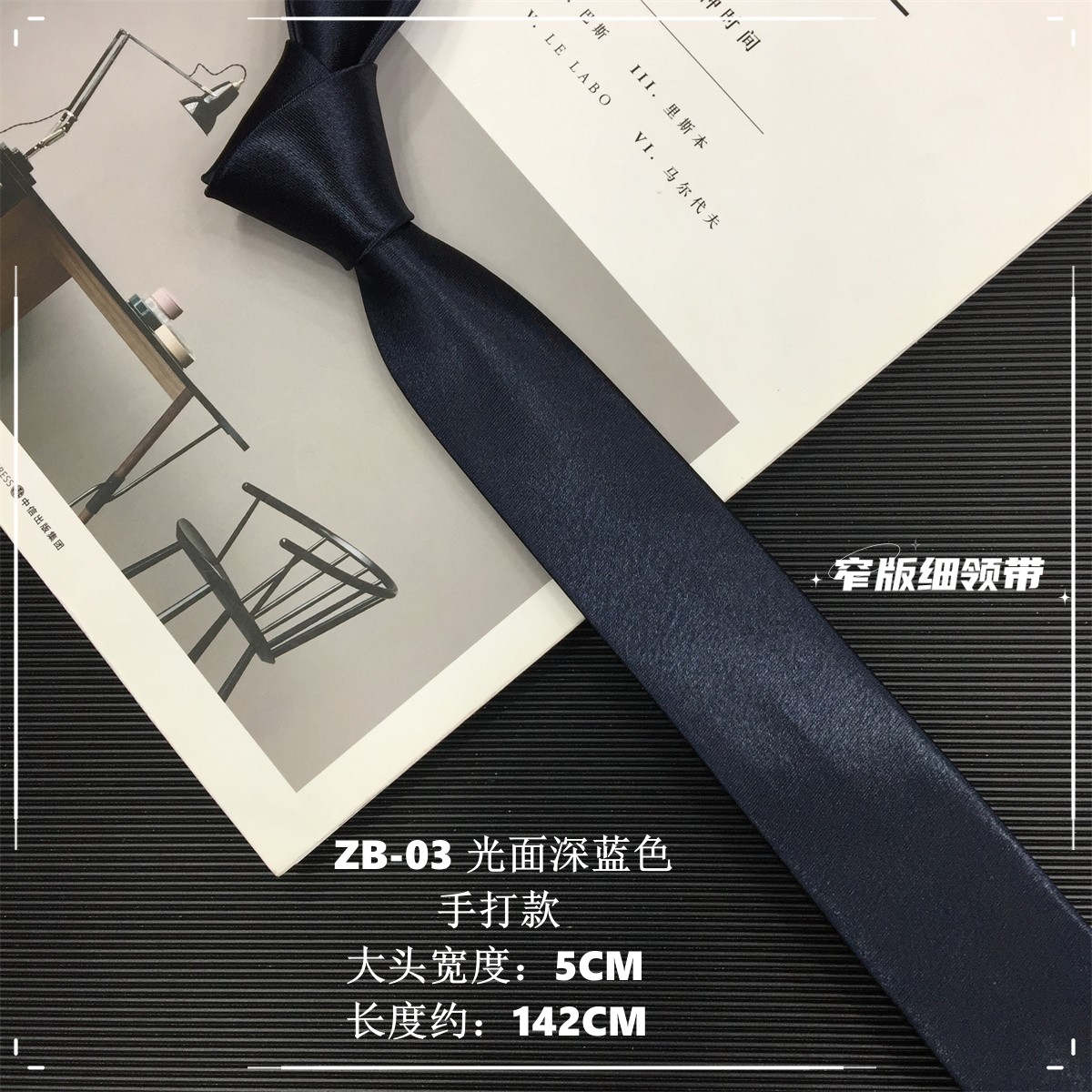 • ZB-03 일반 부드러운 다크 블루 5CM 손으로 만든 좁은 얇은 넥타이